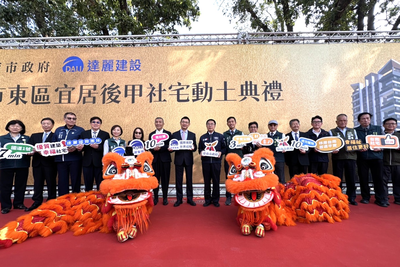 今日出席貴賓,包括內政部國土管理署長吳欣修、臺南市長黃偉哲、臺南市政府都市發展局長林榮川及地方民意代表等,共同見證平實營區邁入嶄新階段的重要時刻。