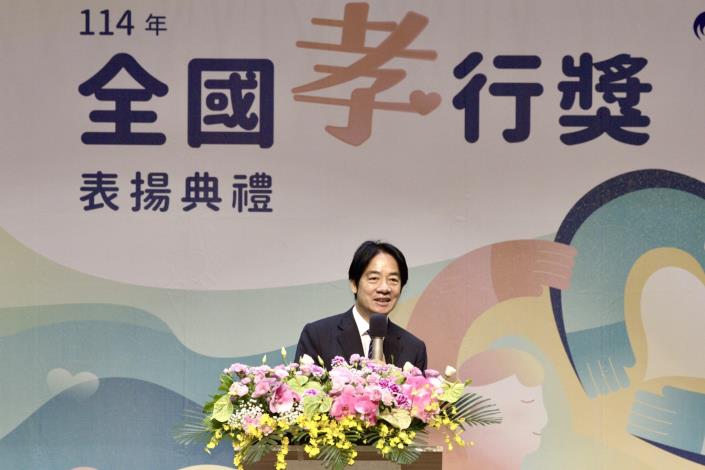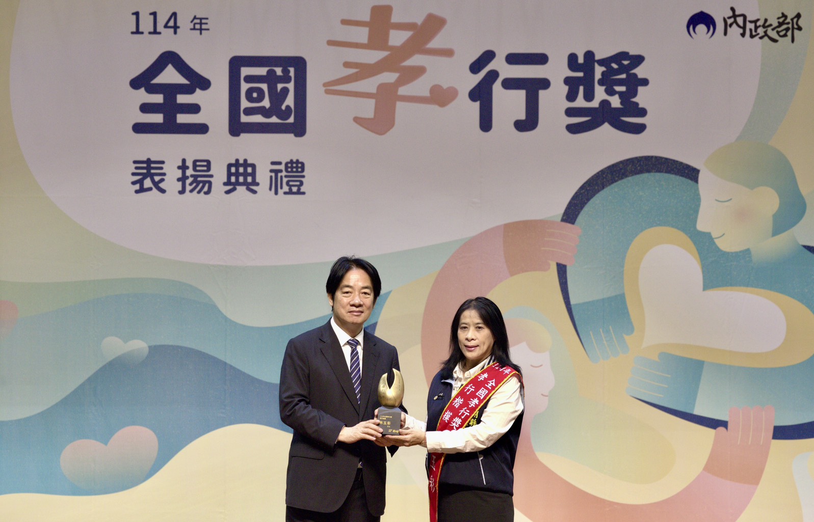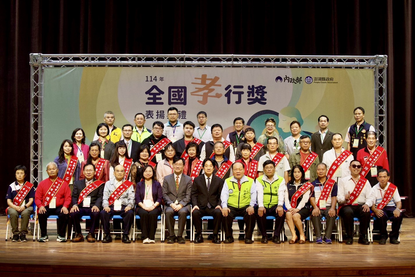 內政部今(28)日在澎湖縣演藝廳與澎湖縣政府共同舉辦「114年全國孝行獎表揚典禮」,由政務次長董建宏親自主持,總統賴清德、澎湖縣長陳光復也蒞臨盛會,表揚來自全國各地的30名孝行楷模。賴總統親自出席,表達對孝道的重視,頒發5名孝行楷模獎座,並與全體孝行楷模合照,留下珍貴的畫面。這場典禮不僅是對孝行楷模長年奉獻的肯定,也彰顯他們在家庭中實踐孝道、無私陪伴的精神。