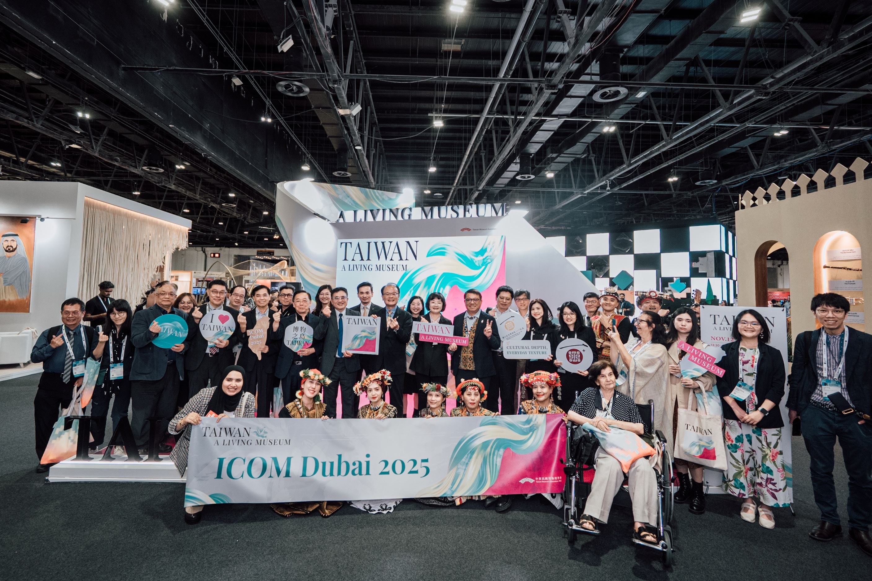 國際博物館協會(International Council of Museums, ICOM)2025年大會於11月11日至17日在阿拉伯聯合大公國杜拜世界貿易中心舉行,7天會期中包含論壇、博覽會及會議交流等,聚集來自各國不同領域的博物館專業人士。臺灣館今(12)日舉辦開幕交流會,包括國際民族誌博物館委員會(ICME)、區域博物館委員會(ICR)、典藏委員會(COMCOL)、視聽新科技與社群媒體委員會(AVICOM)等專業委員會理事成員,以及文化部常務次長徐宜君、中華民國博物館學會理事長洪世佑、駐杜拜臺北商務辦事處長陳俊吉、原住民族委員會常務副主任委員杜張梅莊、教育部終身教育司長梁學政等出席。