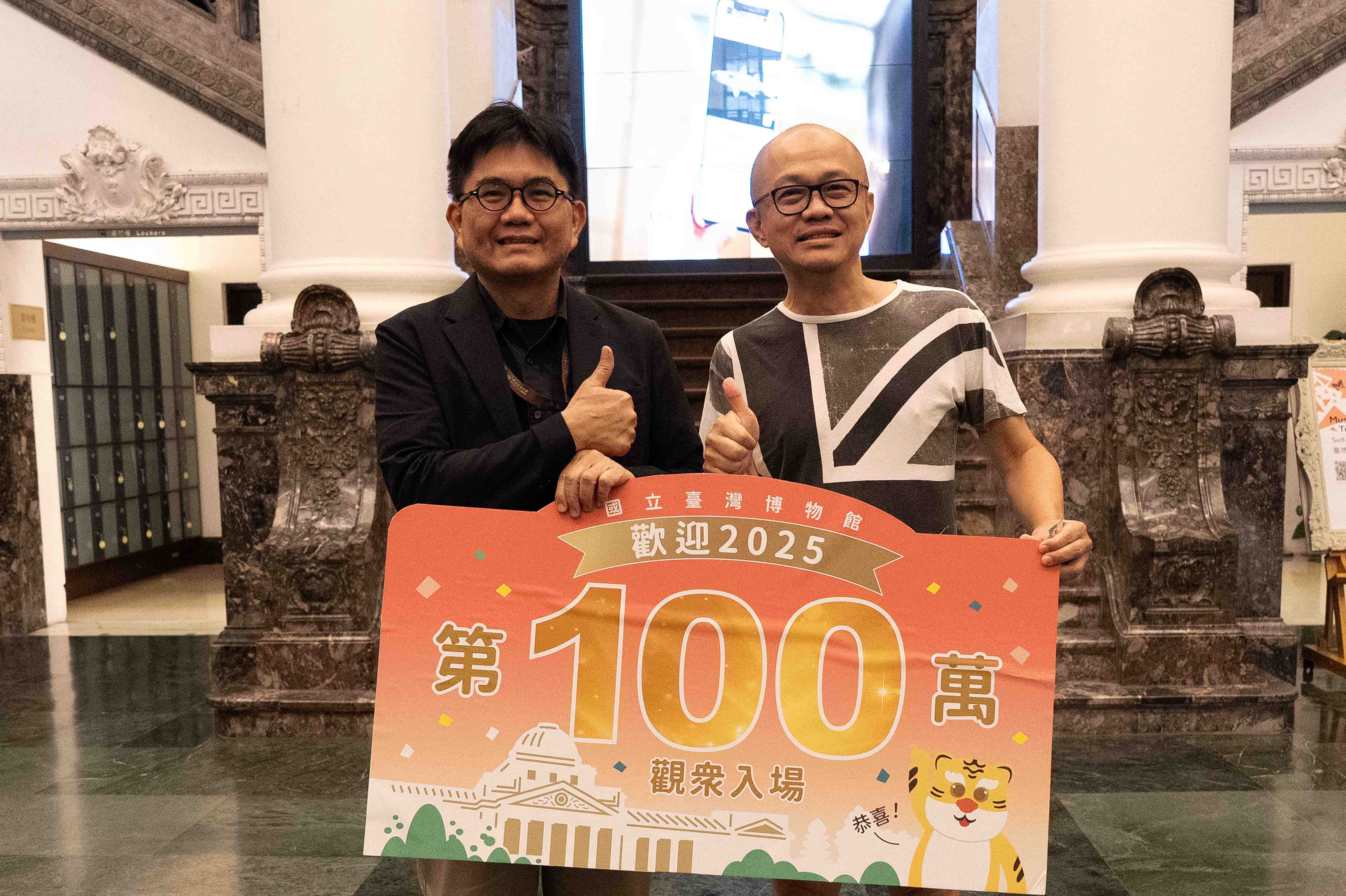 今(11)日中午11時11分,臺博館在本館入口迎來第100萬名入館觀眾——是來自馬來西亞的華僑Mr. Tiew。Tiew表示,他大約十年會回臺灣一次,平時喜歡參觀世界各地重要的博物館,這是他第2次到臺博館,稍早才跟同行友人推薦「票價才30元,這麼漂亮的博物館一定要去!」,沒想到意外成為臺博館百萬人次的見證者。館方於現場舉行簡短儀式,由臺博館長陳登欽親自頒贈終身免票入館之「榮譽貴賓證」與臺博大禮包,並與現場觀眾共同見證這項歷史時刻,氣氛溫馨熱烈。