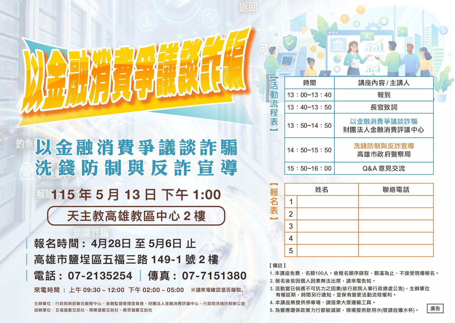 (一)欲參加本講座者,請填寫報名表後傳真至07-7151380或以電話:07-2135254報名。