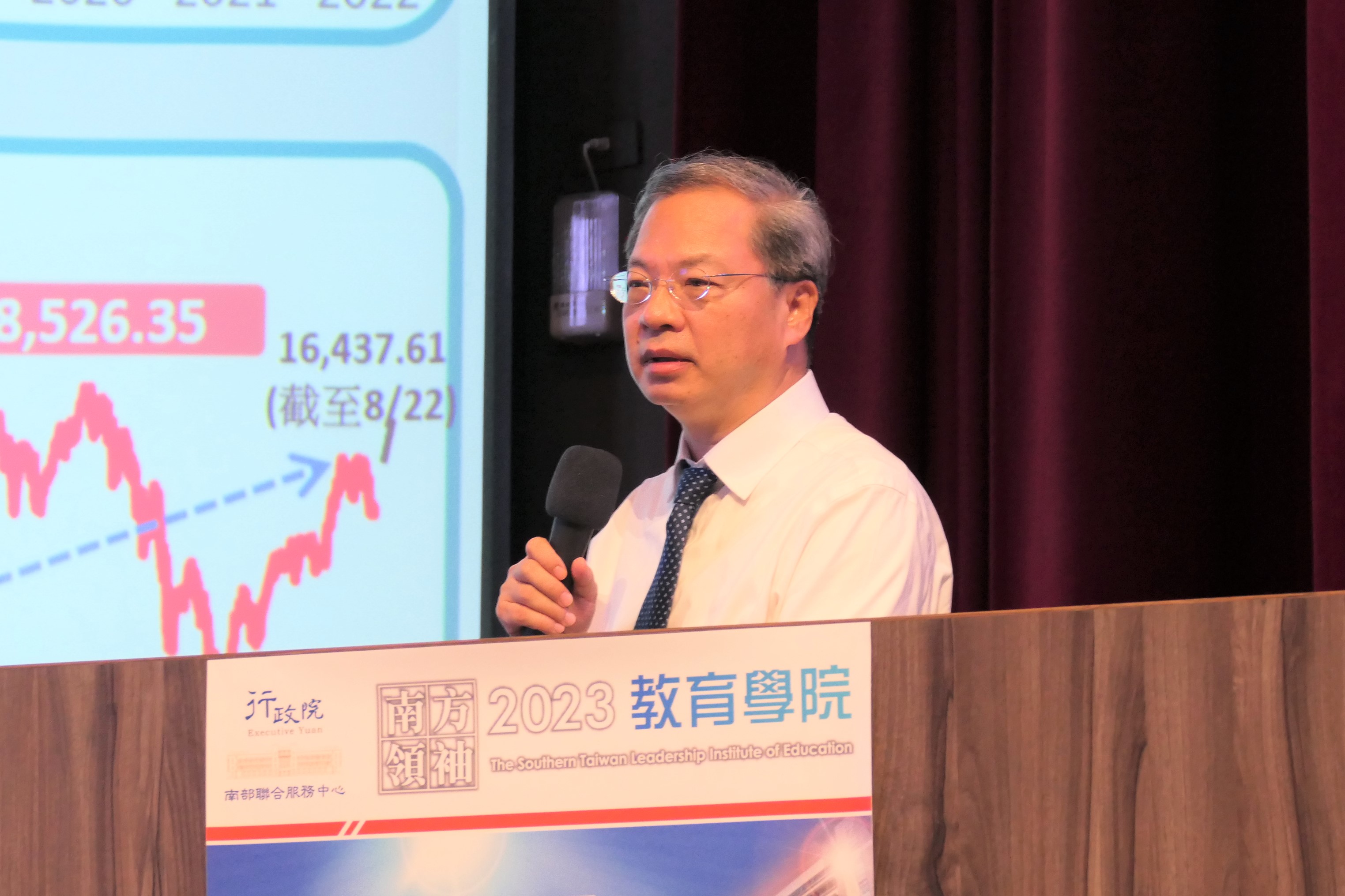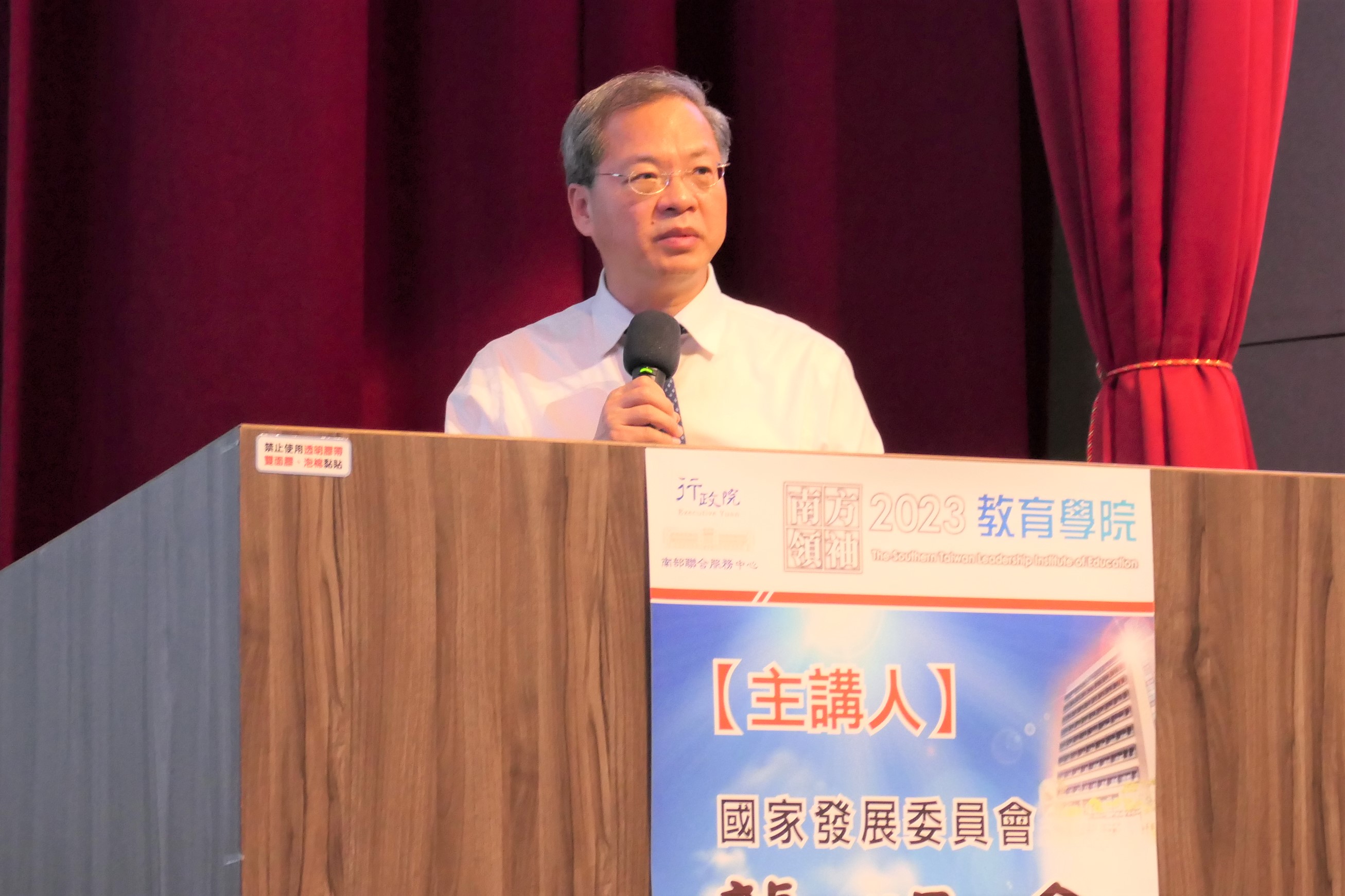 2023「南方領袖教育學院」今(24)日下午邀請到國家發展委員會龔明鑫主任委員,以「從全球經濟局勢看台灣展望」為主題,龔明鑫主委開場以台灣經濟成長率、