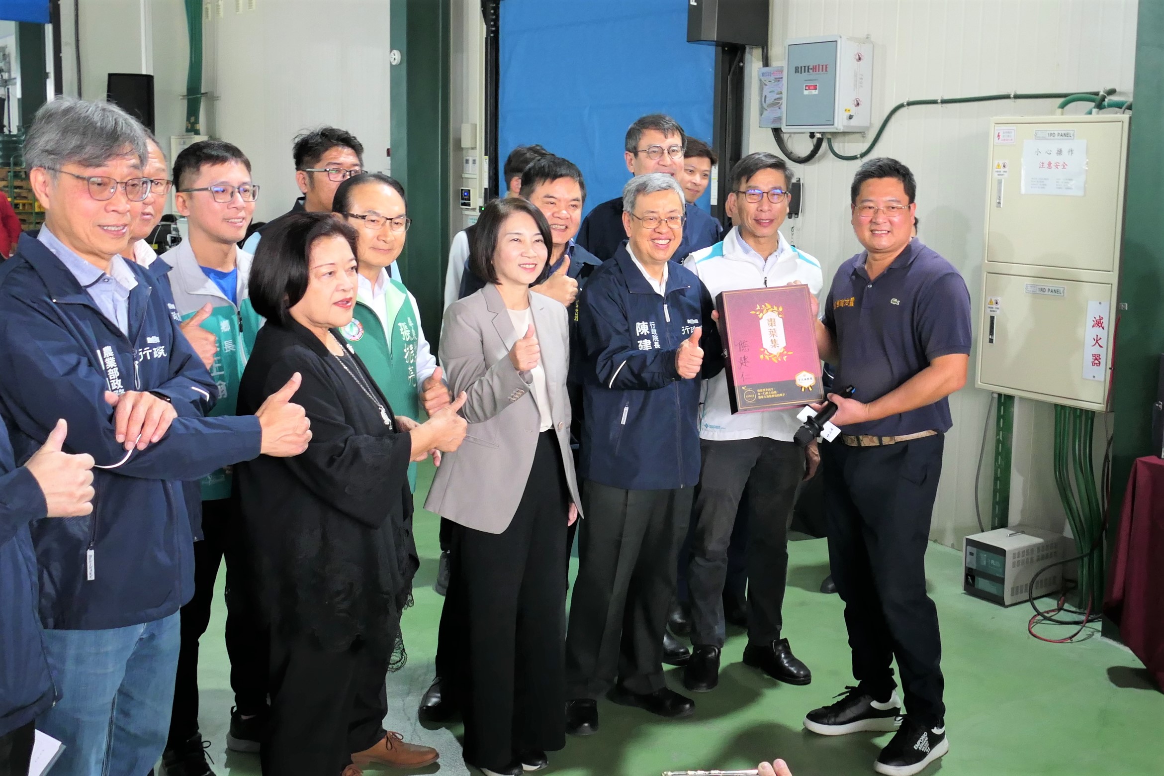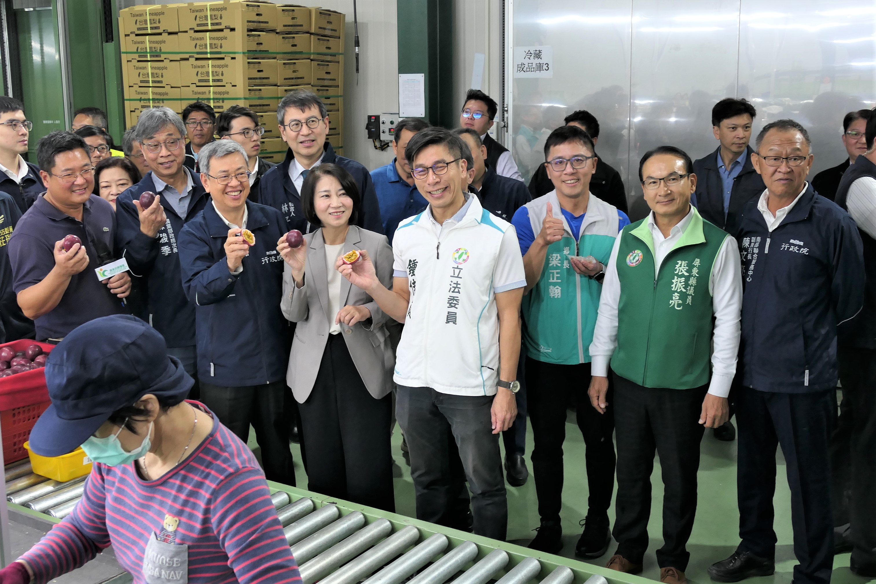 行政院長陳建仁今(9)日在行政院李孟諺秘書長、林子倫發言人、行政院南服中心陳文亮及許乃文副執行長、農業部陳駿季代理部長、農糧署蘇茂祥代理署長、鍾佳濱立委、莊瑞雄立委及周春米縣長等人陪同下,前往屏東縣寶島南方蔬果生產合作社參訪,肯定該合作社運用創新科技及冷鏈技術提升農產品品質,成功拓銷國際市場。