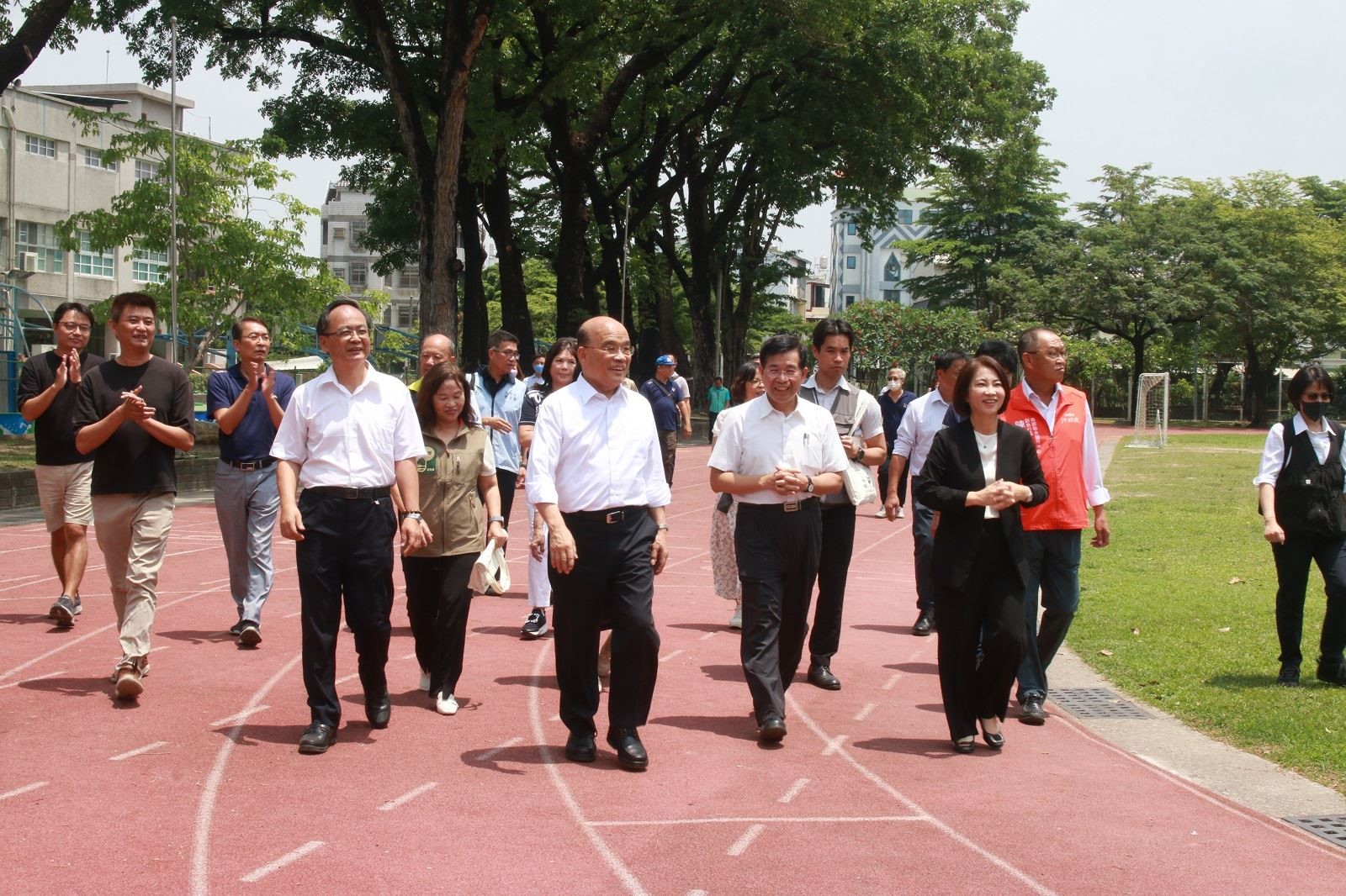 蘇貞昌與家中5個兄弟姊妹都畢業於仁愛國小,母親就讀日治時期的女子公學校也是仁愛國小的前身,畢業後在仁愛國小任教;而當年他落選縣長舉辦告別屏東演講也在仁愛國小,他說相信這些年他為屏東做的,大家應該可以看得見他的用心跟用力。他也感謝潘文忠部長任期圓滿前,又另外補助屏東縣15所學校約4千萬元經費改善運動設施設備。