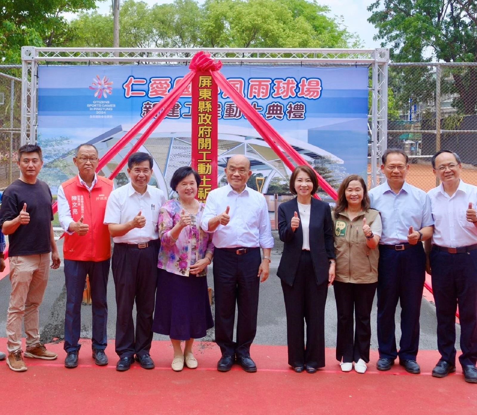 仁愛國小風雨球場新建工程經教育部核定總工程費4,500萬元,以挑高9.3公尺的結構形式規劃1座兼具籃排球場功能的風雨球場,預計於114年3月完工。因為「大學長」蘇貞昌出席動土典禮,細數他與母校及屏東的深厚情感,份外感性溫馨。