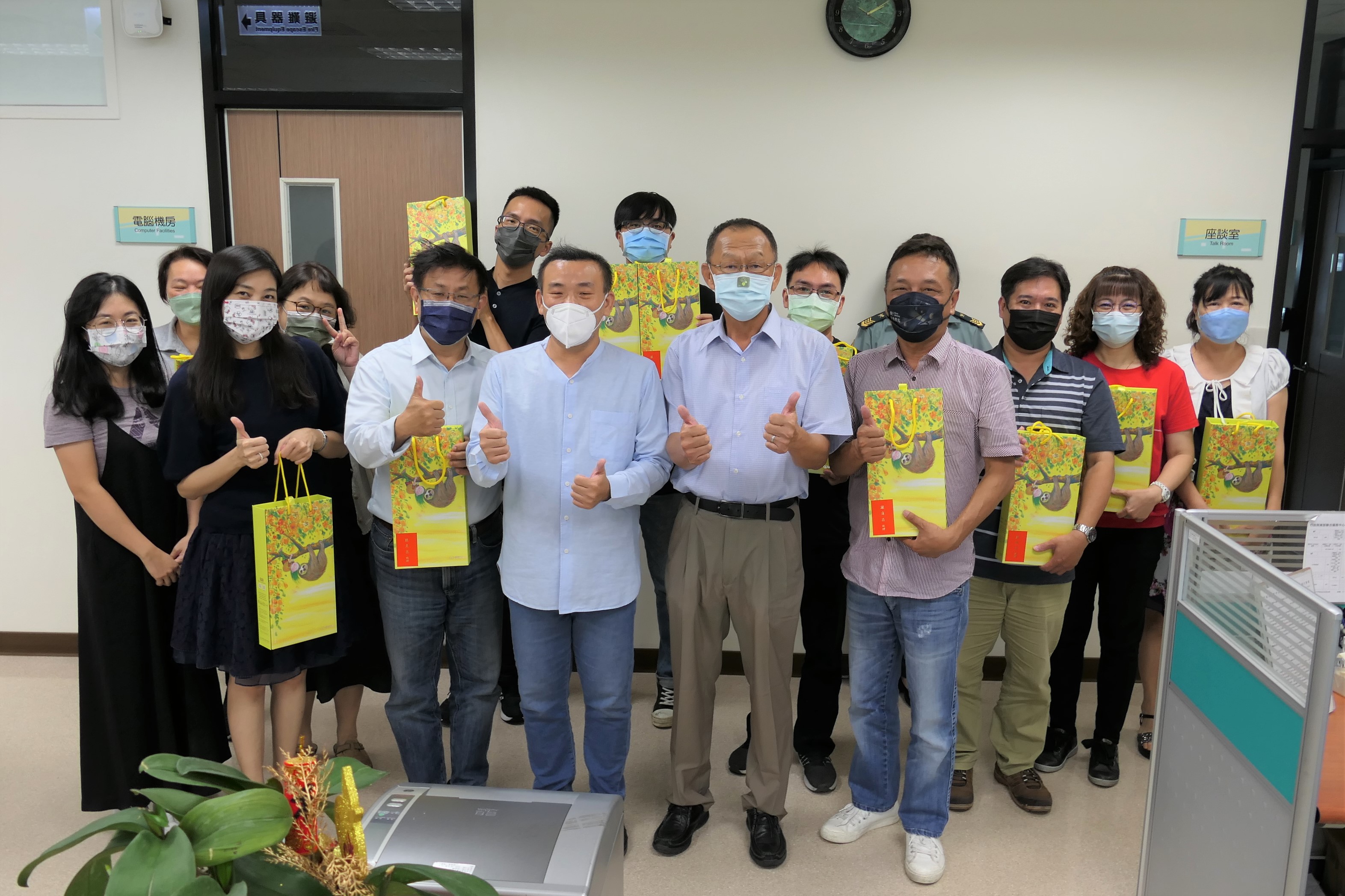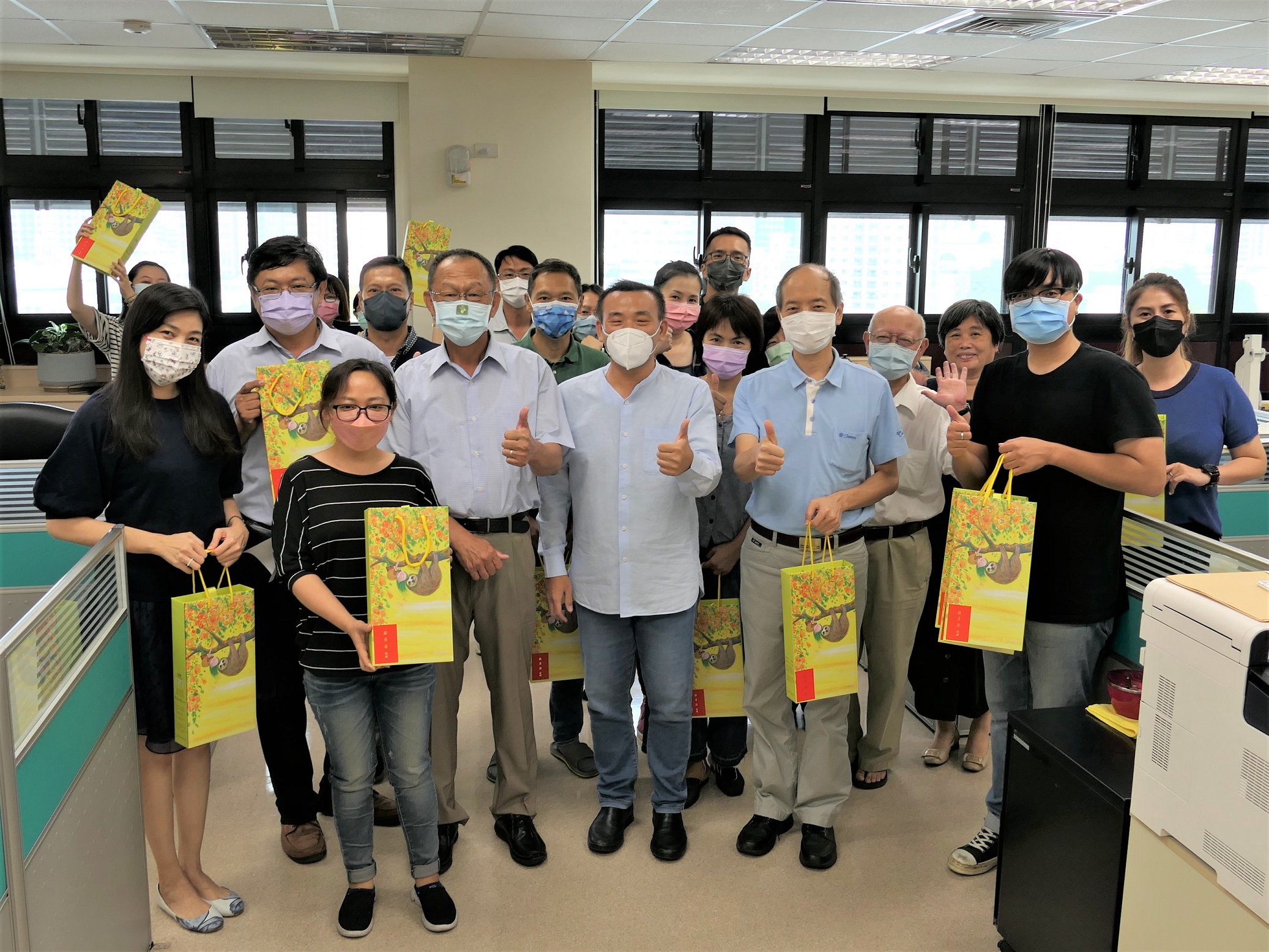 2022年中秋佳節即將到來,行政院南部聯合服務中心二位副執行長陳文亮及許乃文今(6)日代表行政院蘇貞昌院長,致贈佳節月餅禮盒,向每位同仁這一年來不懈努力及付出,致上誠摯的謝意,勉勵不論疫情如何變化,大家在防疫期間也都持續為民服務,同時預祝佳節愉快!