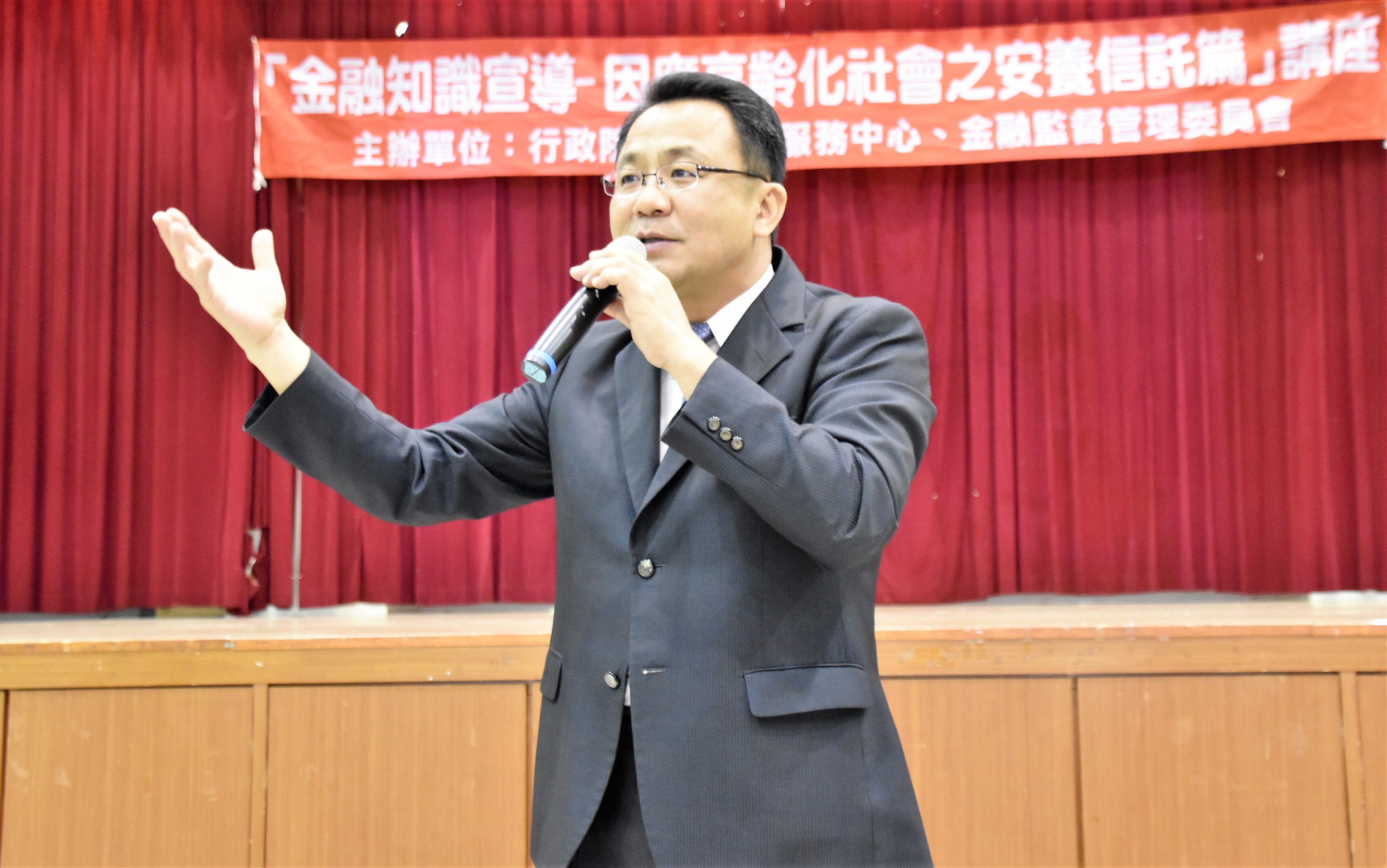 【屏東/報導】行政院南部聯合服務中心今天(7日)下午在屏東市公所5樓大禮堂舉辦「因應高齡化社會之安養信託篇」講座,行政院南部中心黃義佑執行長說,今年5月底我國65歲以上老年人口占總人口達14%,臺灣已邁入「高齡社會」,8年後可能達20%,將邁入「超高齡社會」,因此銀髮理財需求更為迫切。為因應高齡化社會的來臨,金管會鼓勵金融機構積極開發並提供符合高齡者需求的金融商品以為因應,而「安養信託」商品是其中最有溫度的信託,民眾可將老本用在最需要的地方。