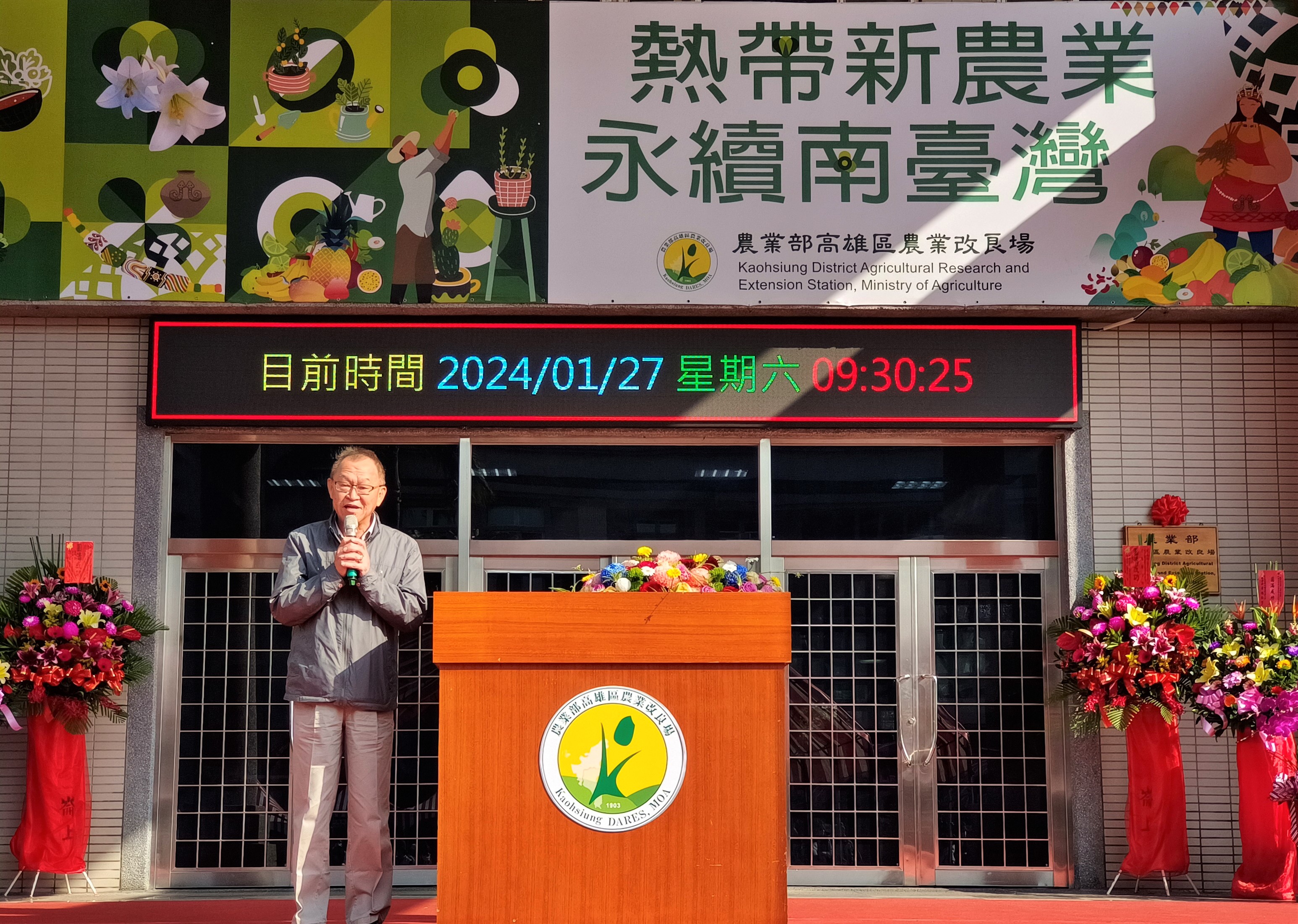 農業部高雄區農業改良場(以下簡稱高雄農改場)為讓普羅大眾更進一步了解該場研發成果,並推介高屏地區優質農特產品,於27日舉辦「熱帶新農業 永續南臺灣」迎賓日活動。由戴順發場長主持,行政院南部聯合服務中心陳文亮執行長、農業部王仕賢技監、綜合規劃司蔡巧蓮司長、科技司陳瑞榮副司長、農糧署姚志旺副署長、農業科技園區管理中心謝勝信主任、臺中農改場楊宏瑛場長、臺南農改場羅正宗場長、高雄市政府農業局王正一副局長、屏東縣農業處鄭永裕處長、轄區農漁民團體代表及各界來賓蒞場,總數超過5,000人熱情參與。