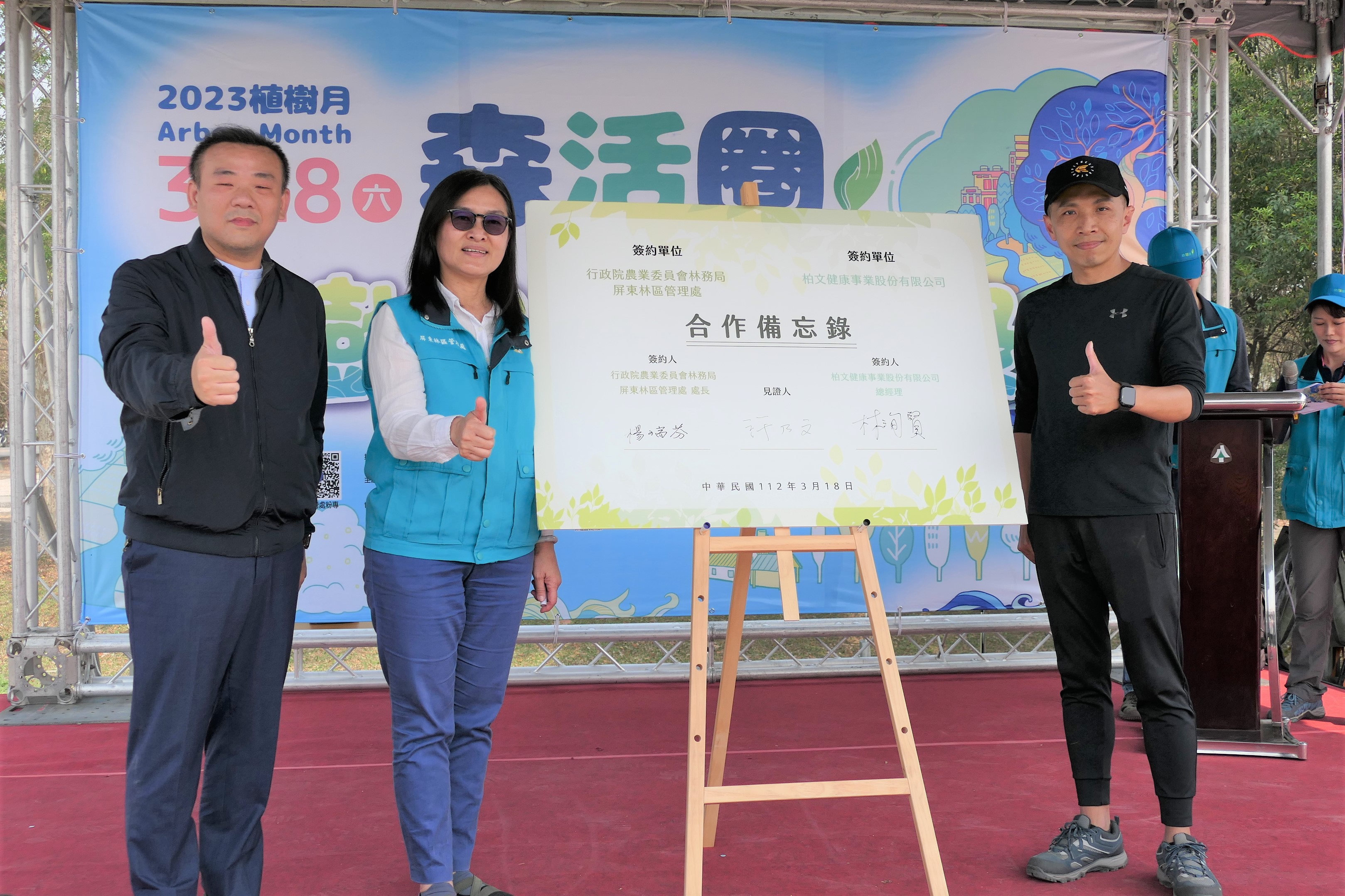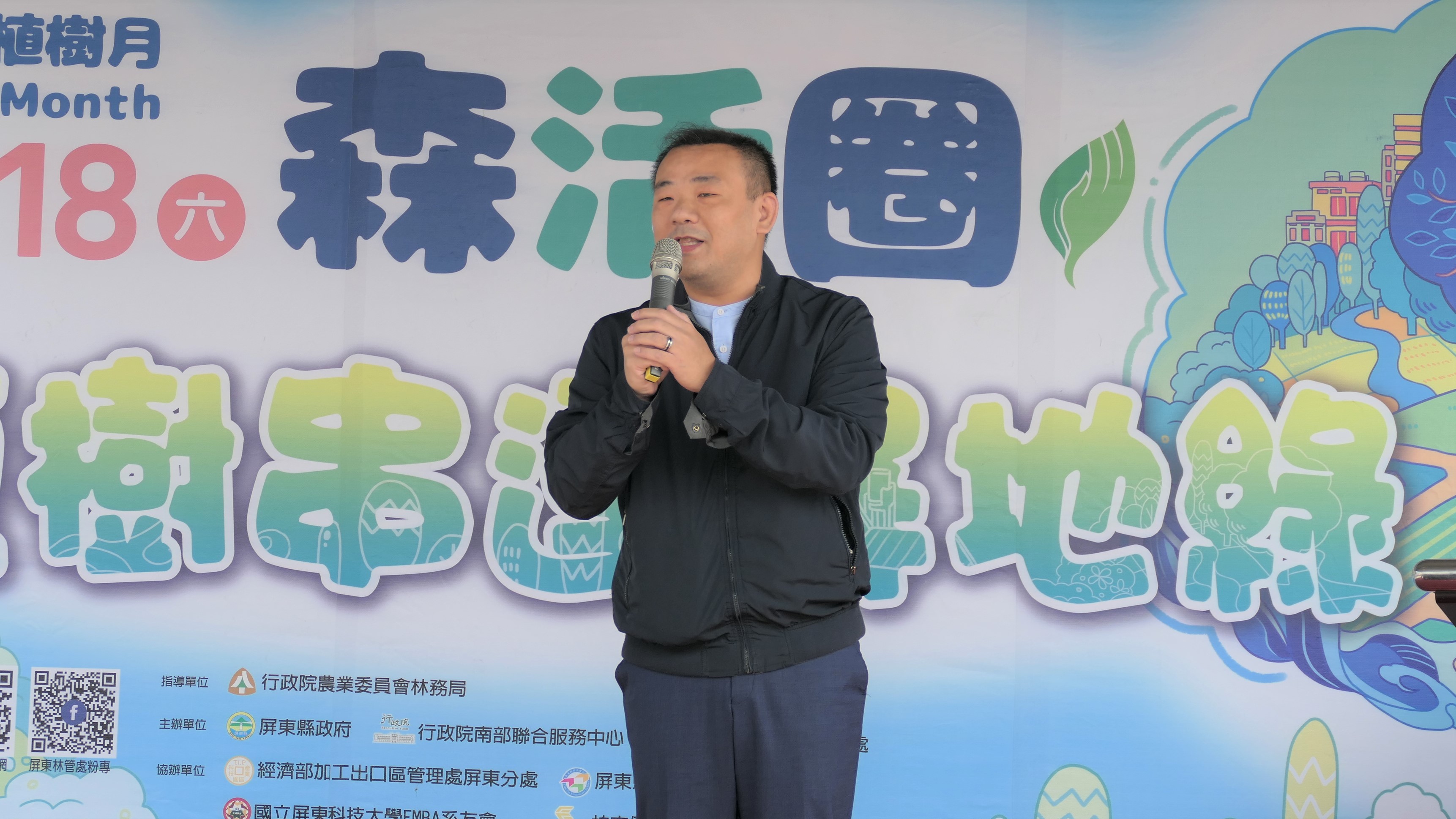 屏東縣政府、行政院南部聯合服務中心、林務局屏東林區管理處於今(18)日在屏東科技產業園區舉辦「森活圈 植樹串連屏地綠」屏東區域植樹活動,由周春米縣長,南部聯合服務中心許乃文、陳文亮副執行長,屏東林管處楊瑞芬處長,與前進國小師生、家長、屏東科技產業園區員工、附近里民、健身工廠會員、林管處志工、屏科大EMBA系友等600多位民眾,共同種下櫸木、黃連木、恆春山枇杷等1,500株原生樹木,以實際行動增加0.5公頃綠地,期待透過植樹活動,逐步從點、線、到面串聯高屏溪周邊棲地網絡,建構適合人與動物共同生活的「森活圈」。