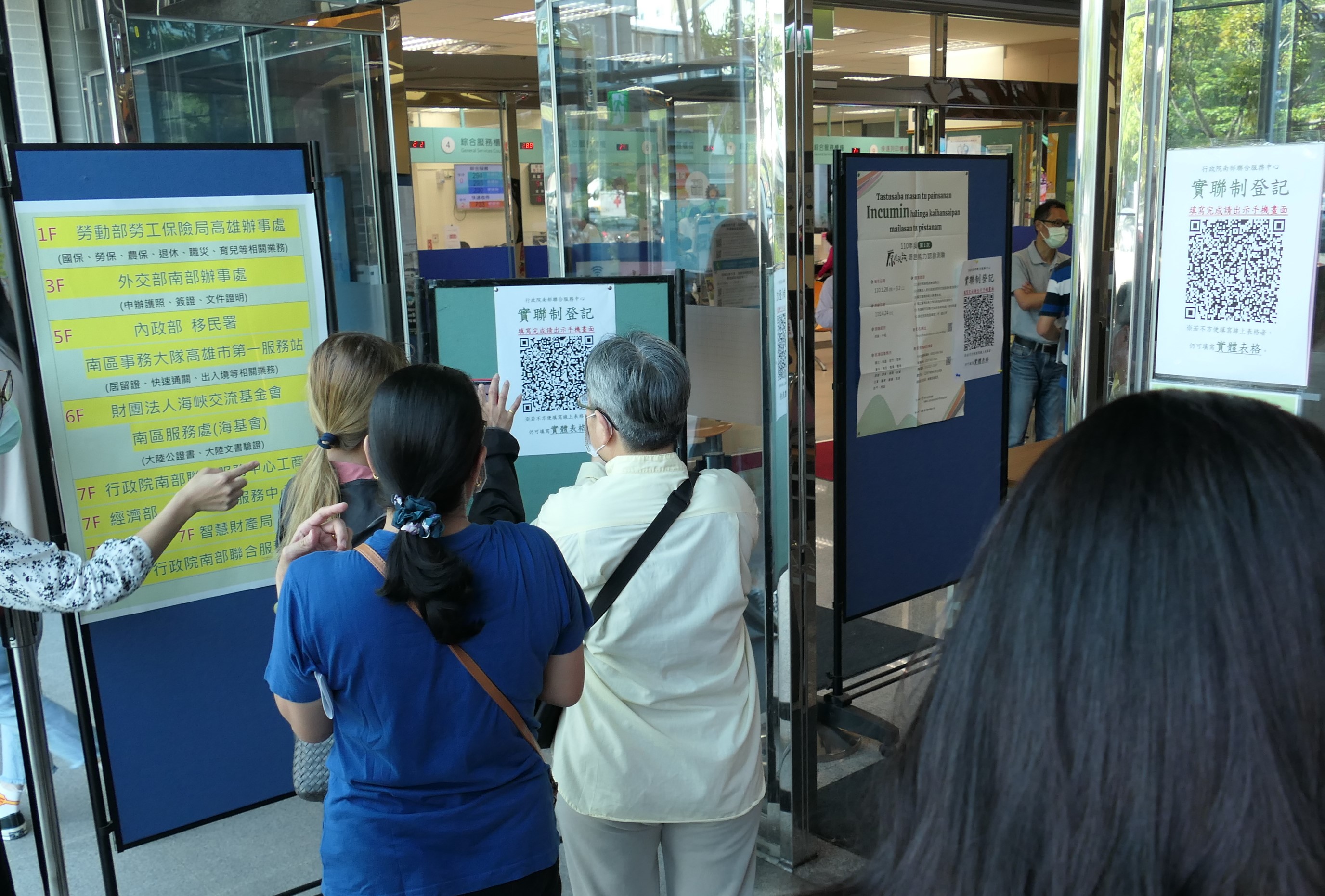 配合疫情升溫,對於進入中心洽公民眾,經量測體溫有超過37.5度者,將商請民眾先行回家休息,中心一樓大門入口處原採紙本實聯制部分,將以一桌一人分流填寫,及增加使用QRcode掃描線上填寫方式。