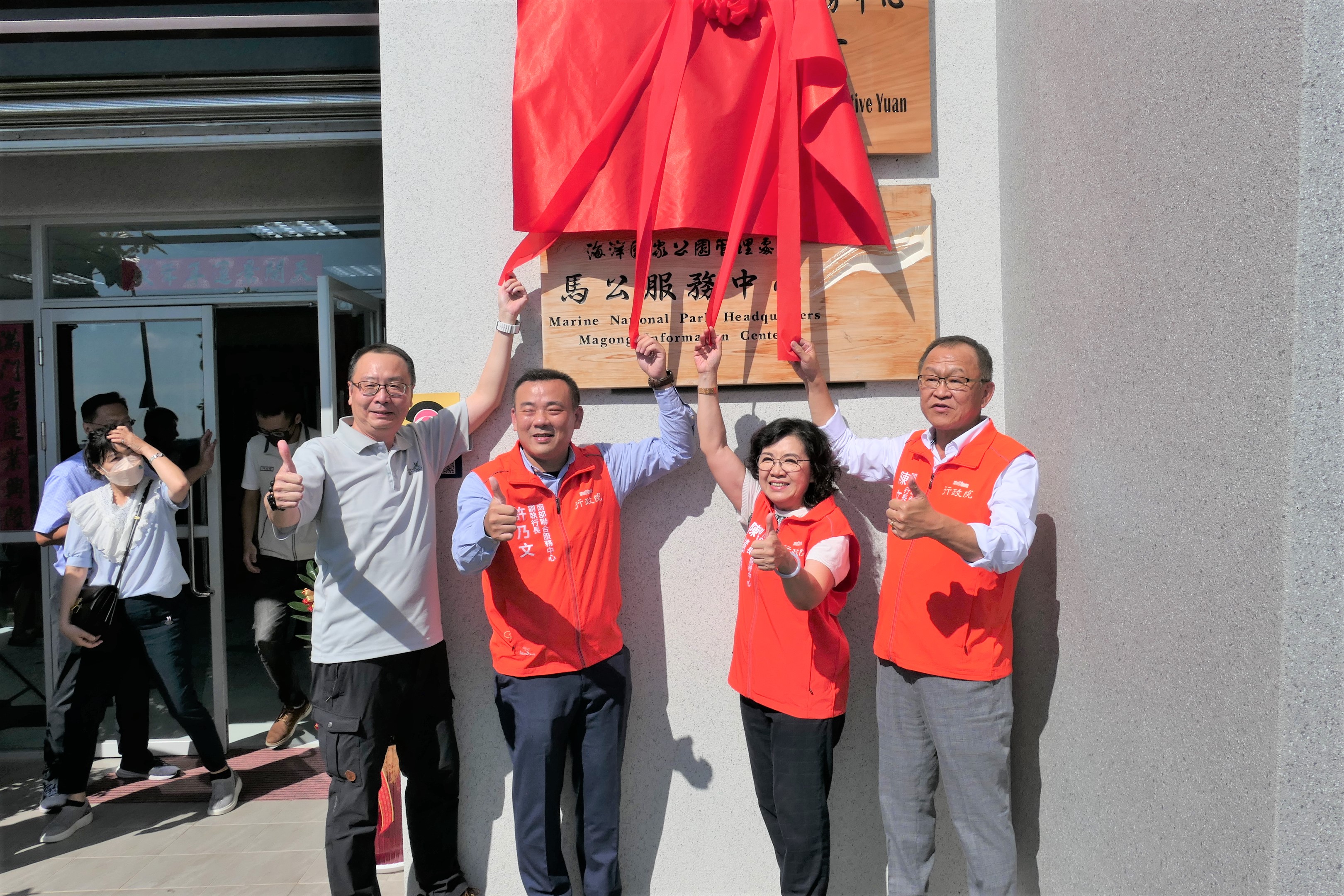 行政院南部聯合服務中心為提供澎湖民眾更廣大多元服務,今(11)日舉辦澎湖辦公室揭牌儀式,由南服中心陳慧玲副執行長與二位副執行長許乃文及陳文亮、內政部海洋國家公園管理處陳乾隆副處長共同進行儀式啟用,現場將近50位貴賓共同見證,未來澎湖辦公室將連結中央與地方資源,跨部會協調合作,嘉惠在地鄉親。