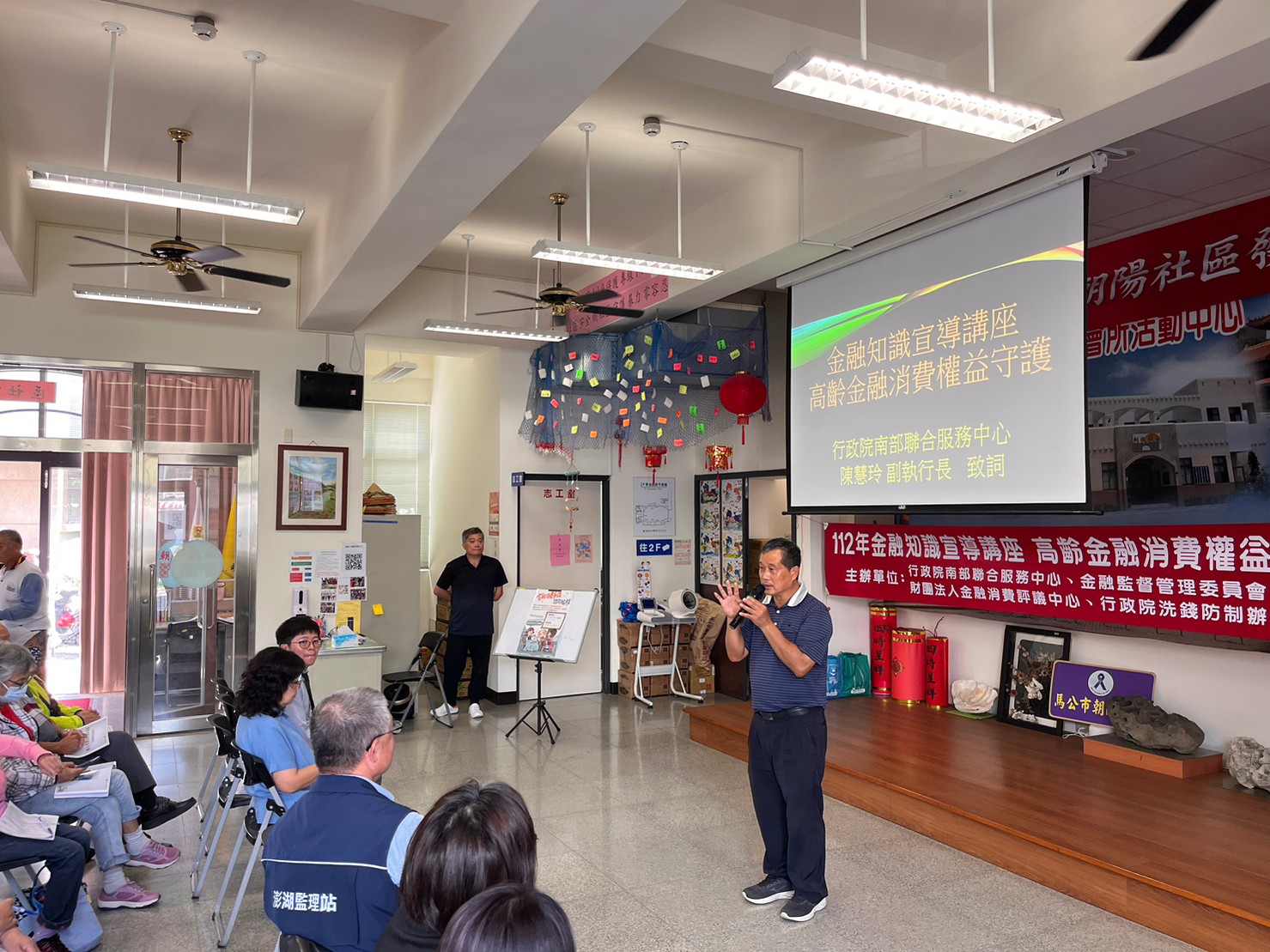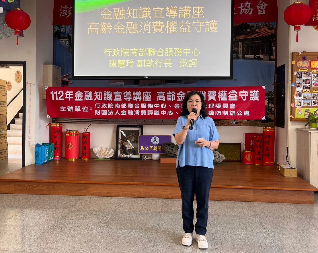 行政院南部聯合服務中心、金融監督管理委員會(以下簡稱金管會)、金融消費評議中心與行政院洗錢防制辦公室(以下簡稱洗防辦)所共同舉辦「金融知識宣導」講座受民眾好評,於今(22)日首度移師澎湖辦理,邀請到評議中心許朕翔專員及洗防辦王玉瓊諮議分別演講「高齡金融消費權益守護」,以及「認識洗錢防制 遠離詐騙陷阱」等主題,現場近百位澎湖鄉親參與。