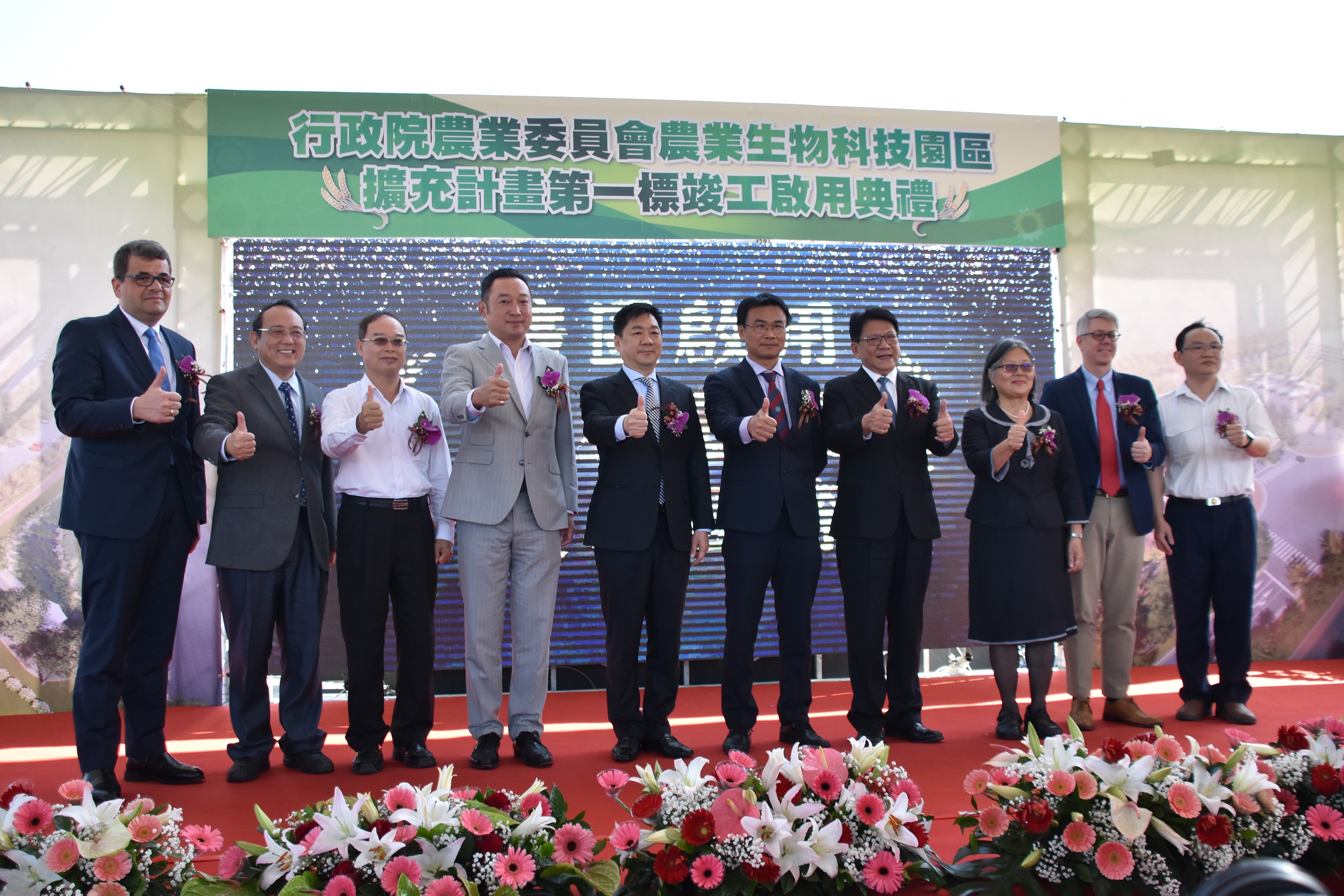 屏東農業生物科技園區擴充計畫,第一標工程今(13)日舉行竣工啟用典禮,農委會主委陳吉仲、行政院南部聯合服務中心執行長陳政聞、內政部政務次長陳宗彥,以及屏東縣潘孟安縣長都出席這場典禮,對農科園區及屏東在地產業發展而言,都是一個新的里程碑。