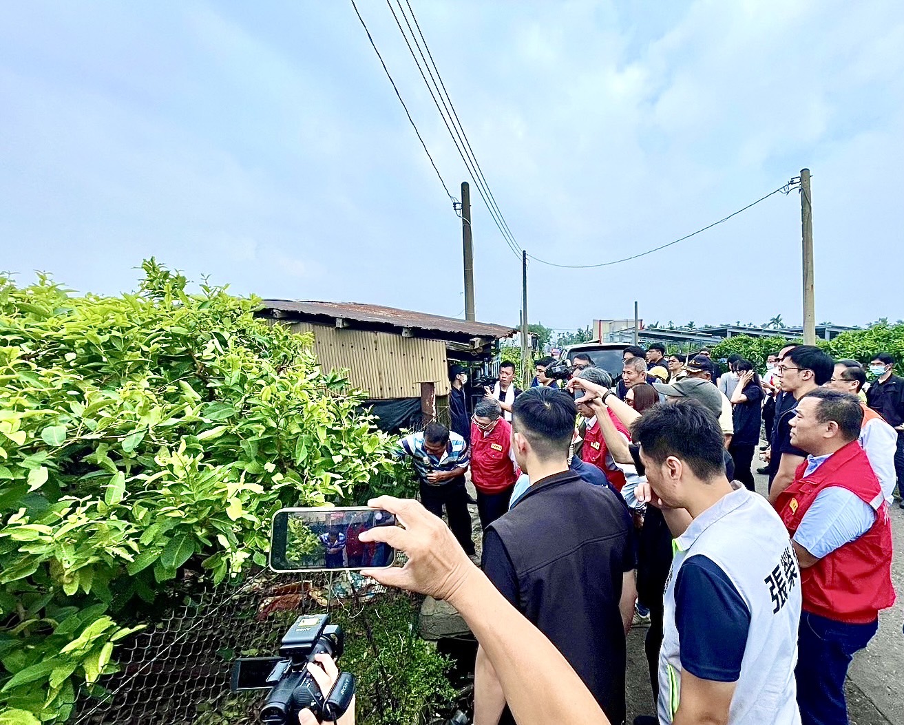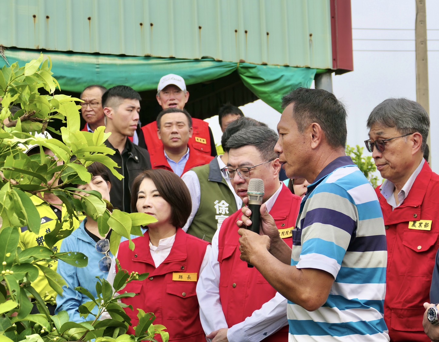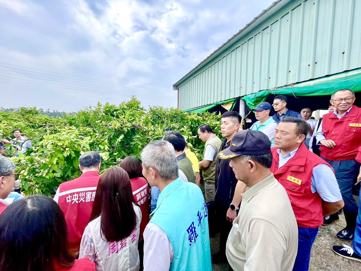 致詞結束後,卓院長偕同農業部陳駿季部長、經濟部郭智輝部長、行政院李慧芝發言人、徐富癸立法委員、莊瑞雄立法委員、行政院南部聯合服務中心許乃文執行長、行政院南部聯合服務中心陳文亮副執行長、屏東縣周春米縣長等人,在農友童耀寬的陪同下,前往佳冬蓮霧田區現地視察,瞭解蓮霧農作災損情形,並仔細聆聽其他在地農民的心聲與建言。