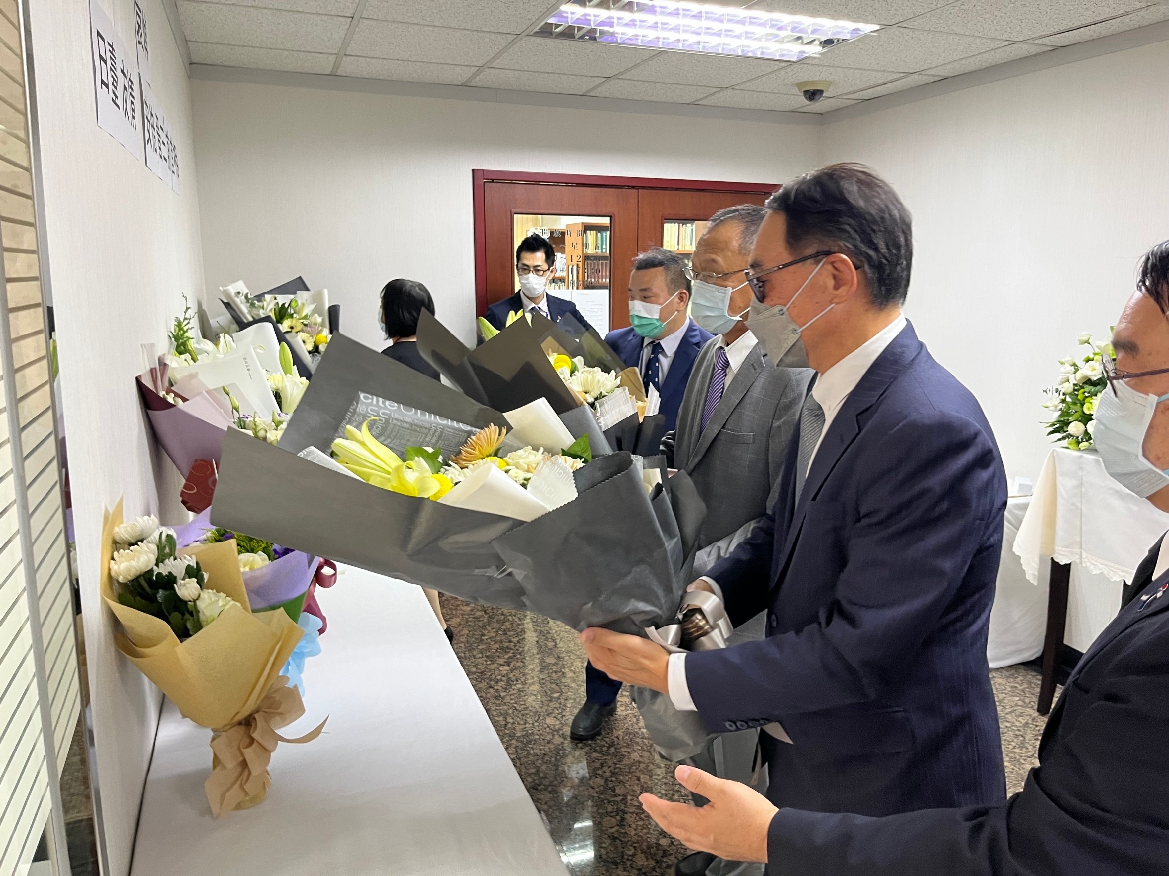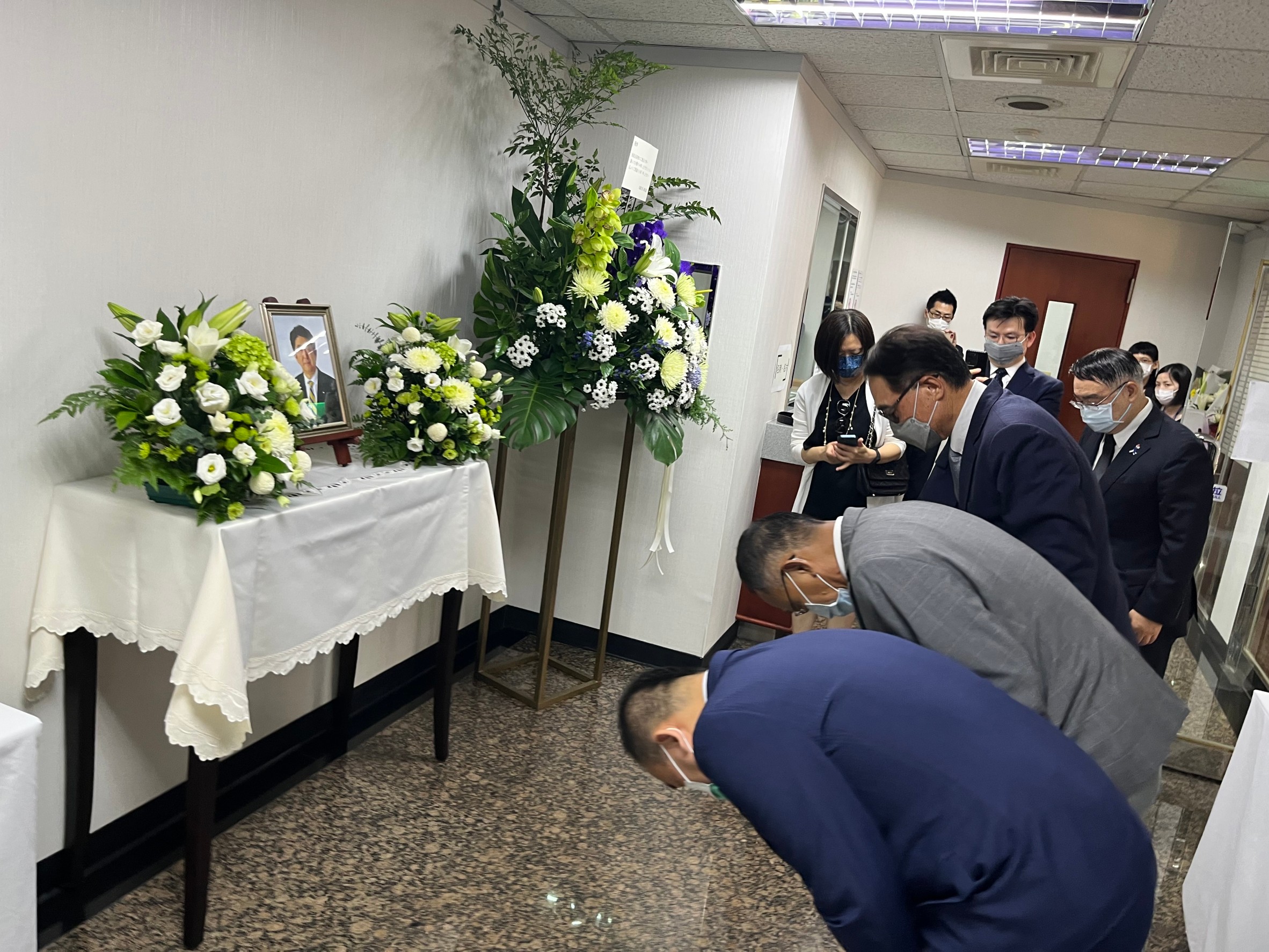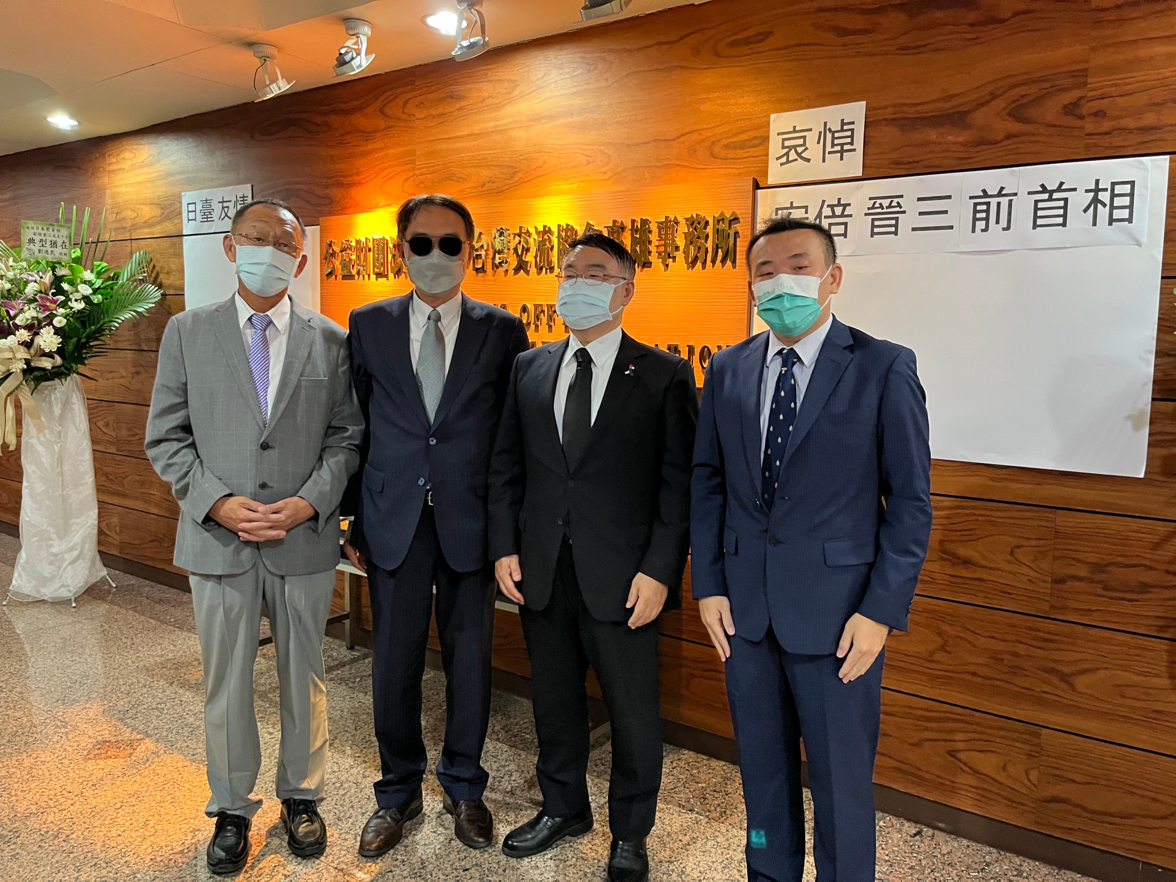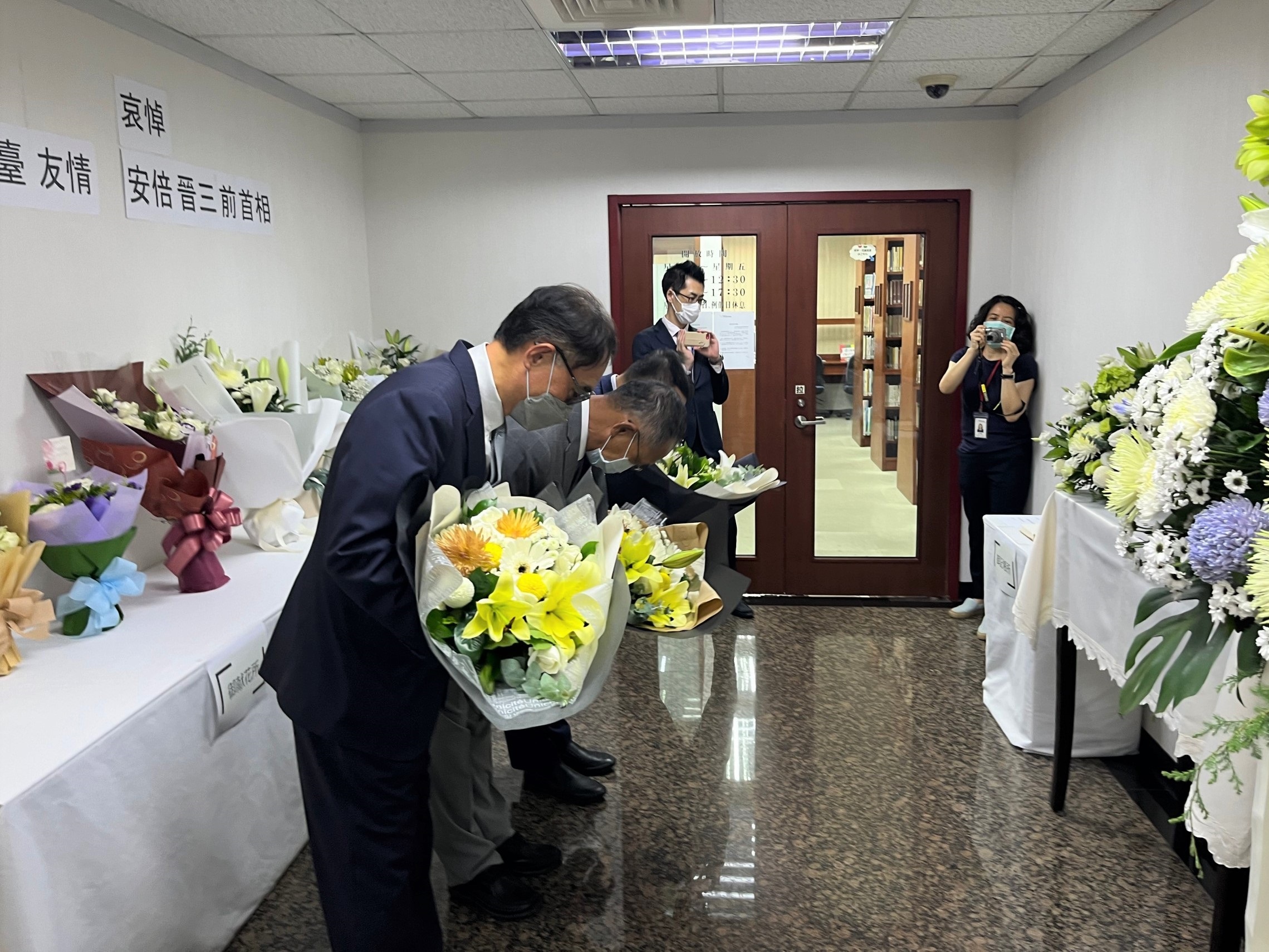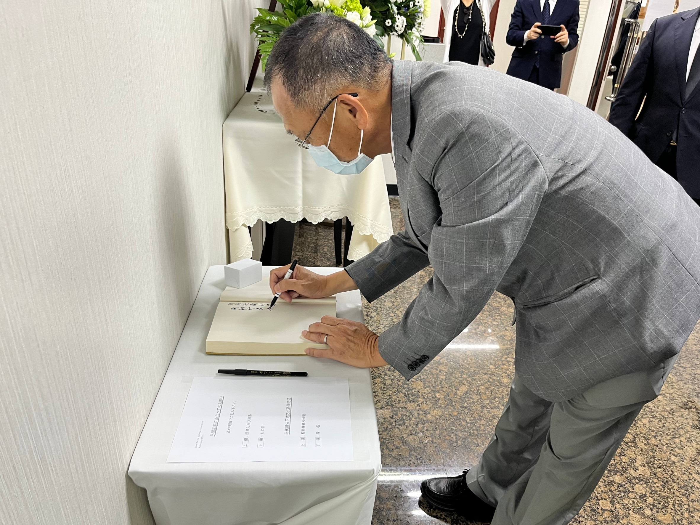 前日本首相安倍晉三上周五(8日)在街頭遭槍擊身亡,今(11)日下午行政院南部聯合服務中心二位副執行長陳文亮及許乃文,偕同外交部南部辦事處處長沈正宗、副處長劉昶成一同前往日本台灣交流協會高雄事務所,在所長小野一彥陪同下弔唁安倍晉三。