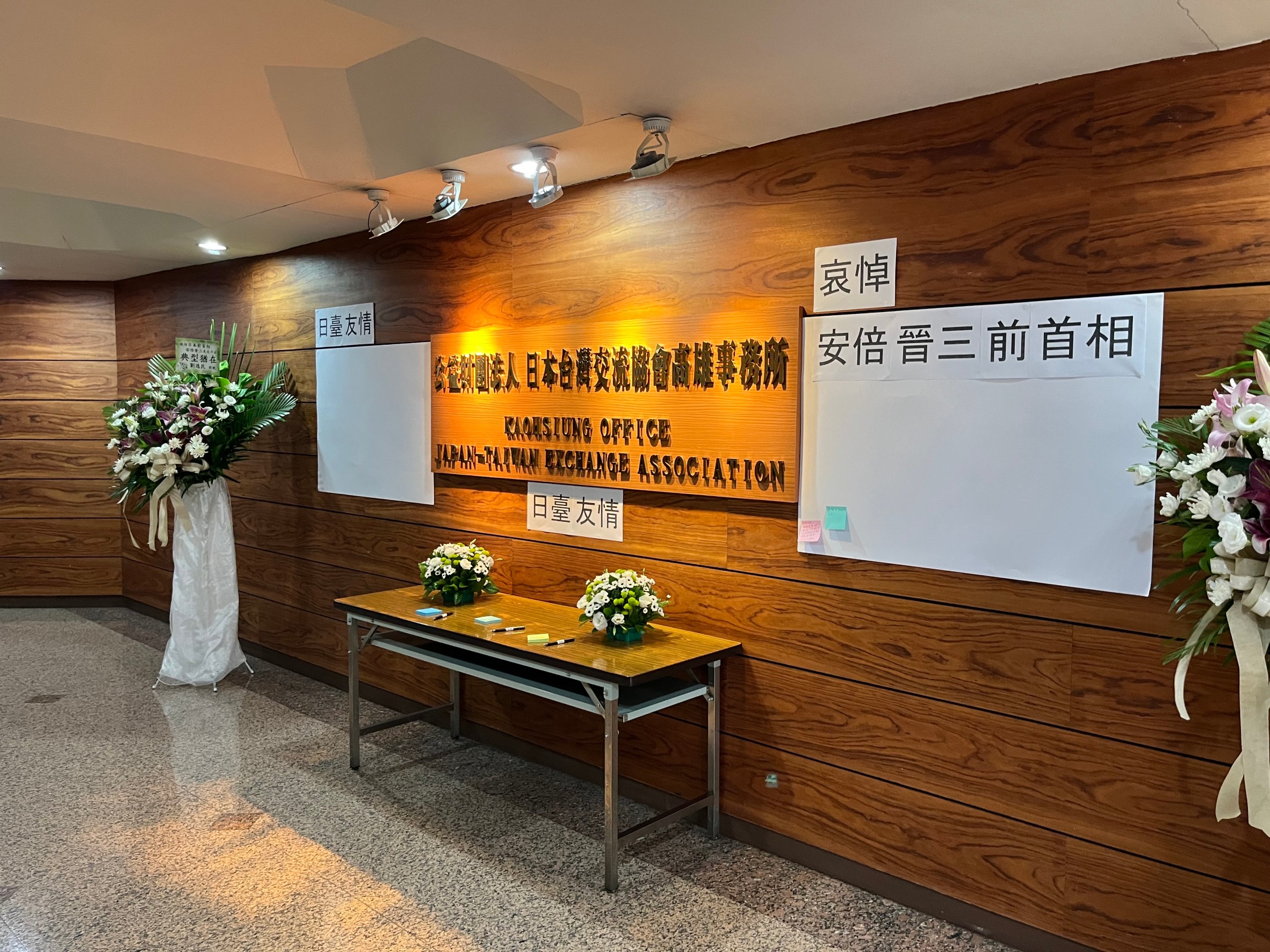 安倍前首相被台灣人稱之為最友台的首相,今日高雄事務所外也布置一處寫有「日臺友情 哀悼安倍晉三前首相」之留言板供民眾悼念,讓南部民眾也能向安倍致上最高敬意。