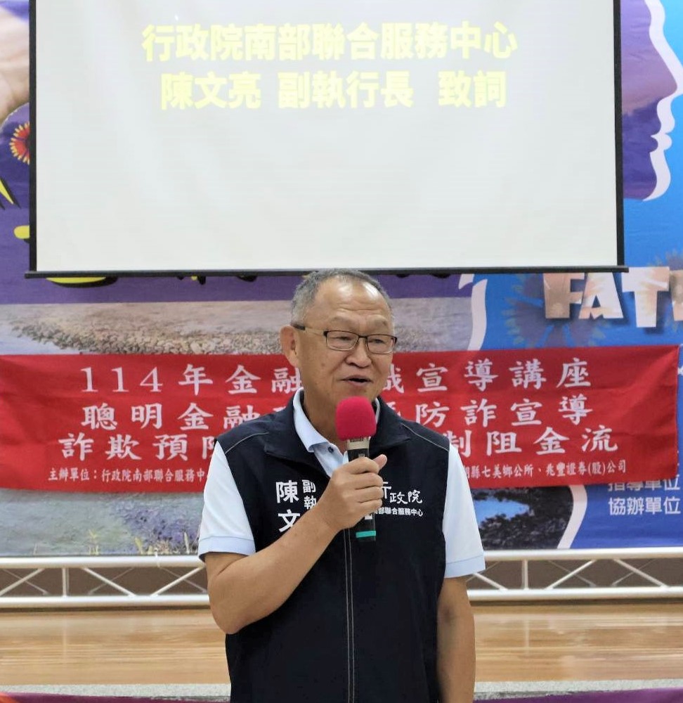 行政院南部聯合服務中心致力協助民眾識詐、防詐,保障民眾財產安全不遺餘力。今(21)日特別深入澎湖七美鄉,至七美鄉老人文康活動中心舉辦金融知識宣導講座,吸引逾140位當地民眾踴躍參加,其中許多是長者,顯示民眾對防詐的重視。