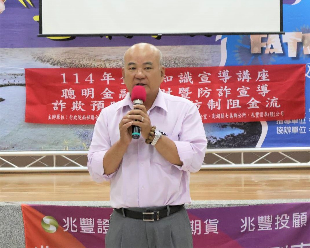 南服中心陳文亮副執行長表示,詐騙隨時都可能發生在我們身邊,現在AI進步,連照片、影片都能被合成。再加上近年離島地區的詐騙案件增加,因此南服中心特別來到七美宣導實用的防詐技巧,希望能和大家一起打造更安全、安心的生活環境。