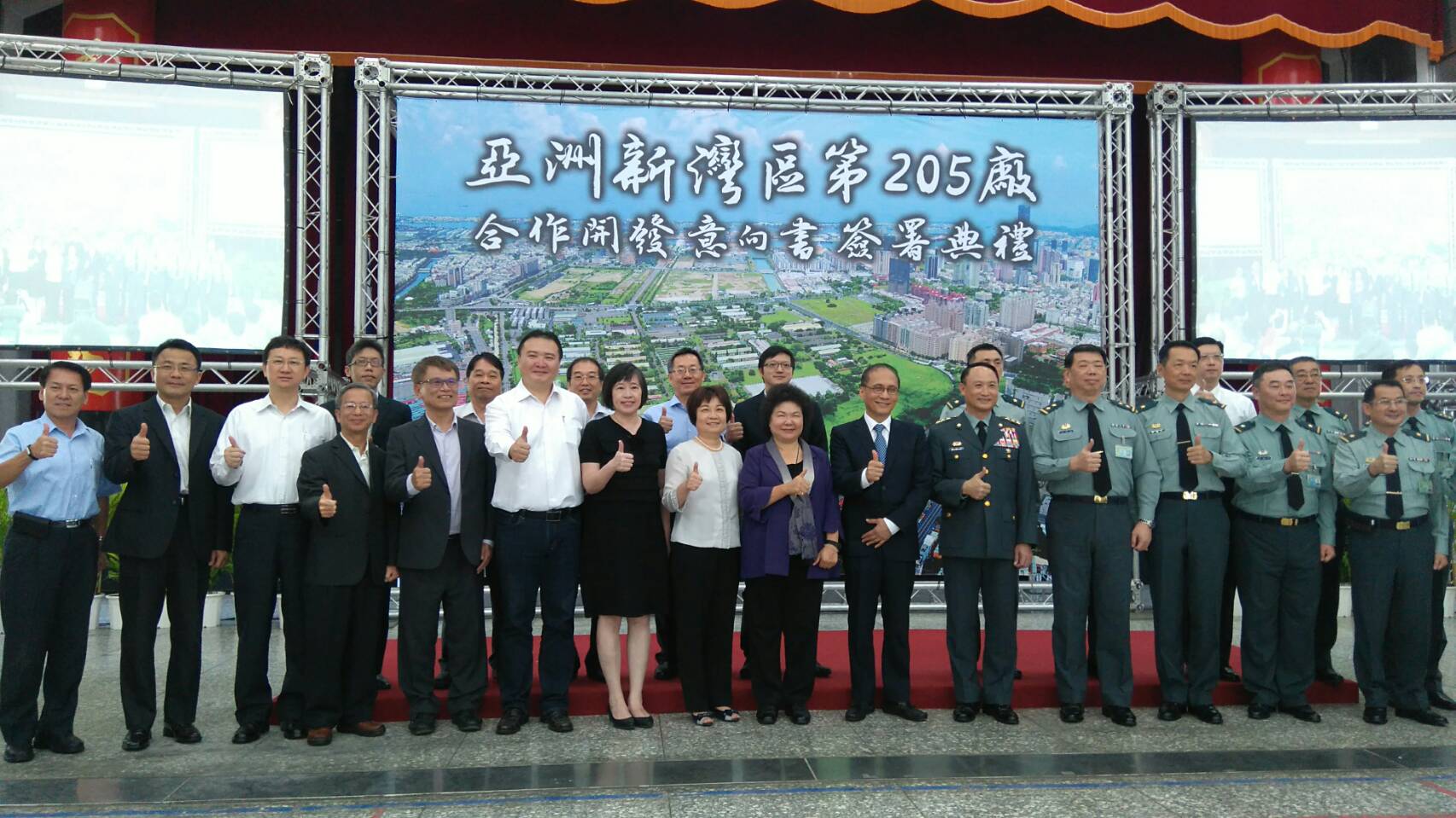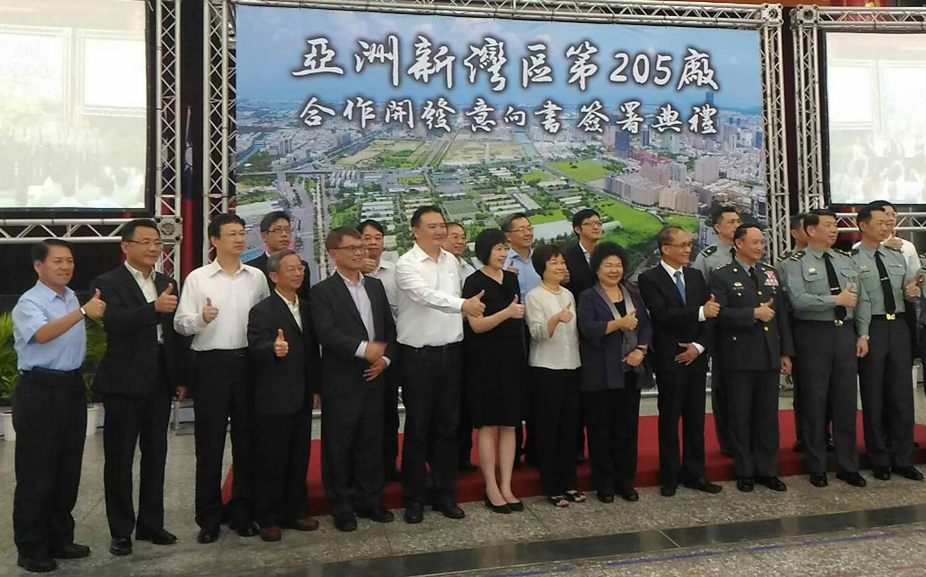 【高雄訊】位居亞洲新灣區核心的國防部第205廠,8月5日在行政院長林全見證下,高雄市長陳菊與國防部副部長鄭德美共同簽署合作開發意向書,啟動打造灣區經貿新核心。