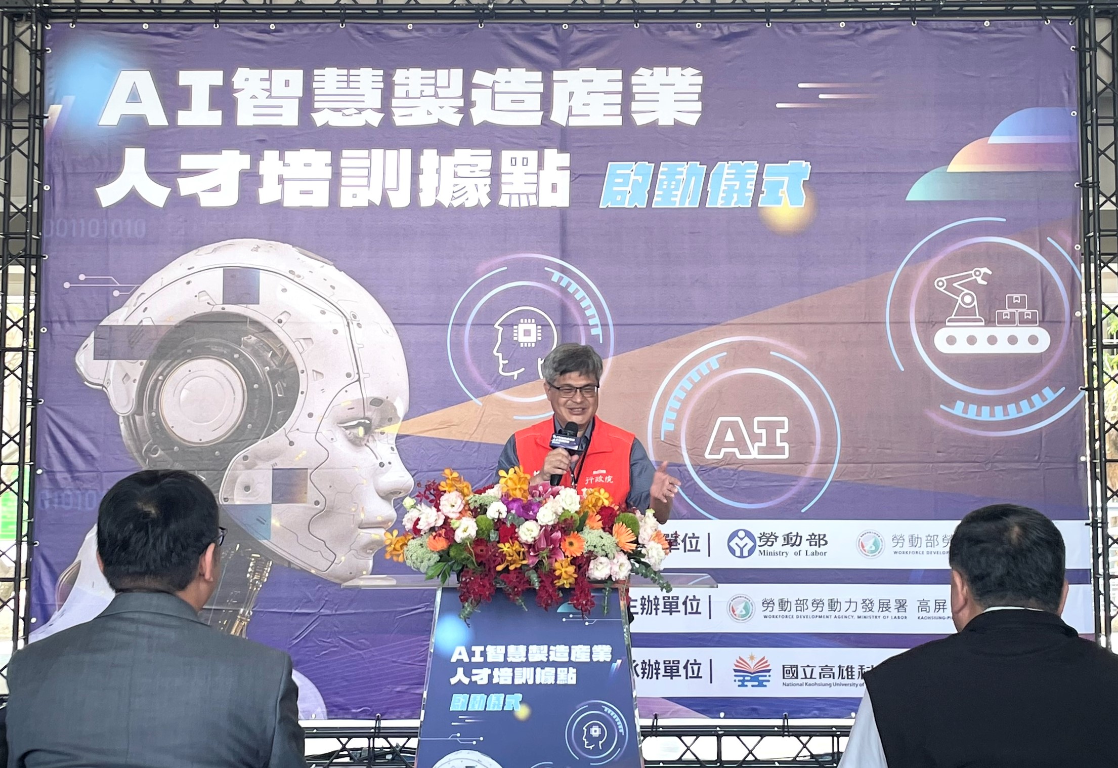 為因應產業AI智慧製造人才需求持續攀升。勞動部勞動力發展署高屏澎東分署與國立高雄科技大學合作,於該校建工校區設立「AI智慧製造產業人才培訓據點」,並於今(29)日舉行啟動儀式。高分署分署長郭耿華、行政院南部聯合服務中心副執行長謝文斌、國立高雄科技大學副校長蔡匡忠、立委林岱樺、立委許智傑與近80多位來自產官學界代表共同出席,政府與產業攜手推動AI專業人才培訓,為南部產業升級及人才轉型注入關鍵動能。