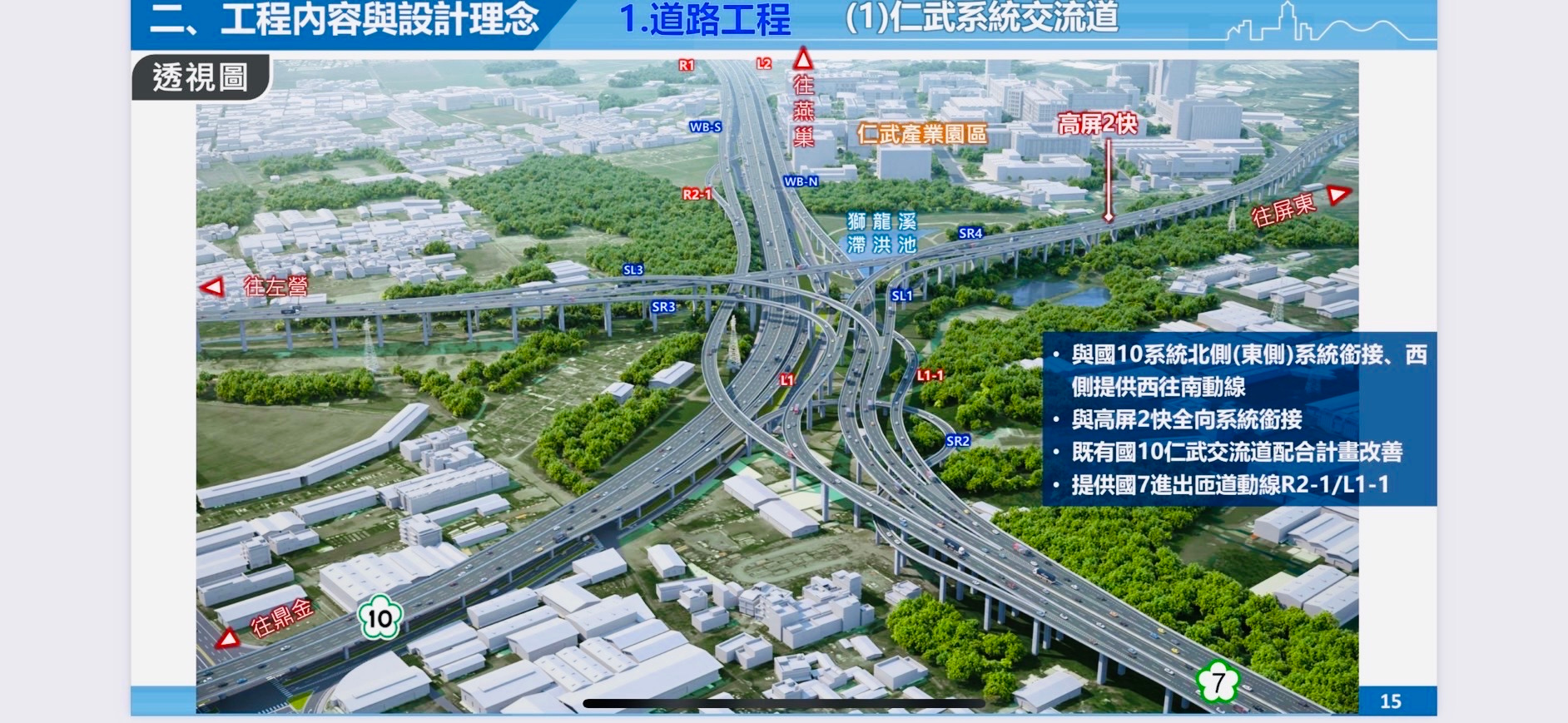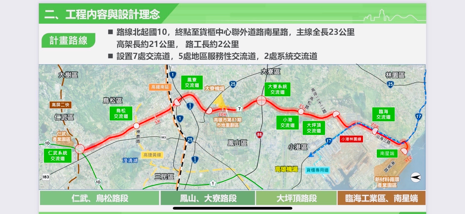 高公局指出,國道7號全長約23公里,橫貫林園、大寮、鳳山、鳥松、大樹至仁武,設有2座系統交流道及5座服務交流道,本案沿線地形複雜、緊鄰都會區交維難度高,施工過程中的技術整合、民意溝通與環境維護皆為關鍵挑戰。因此,後續交通部將與主辦機關成立「專案團隊」,導入系統性專案管理機制,確保施工品質與期程同步到位。