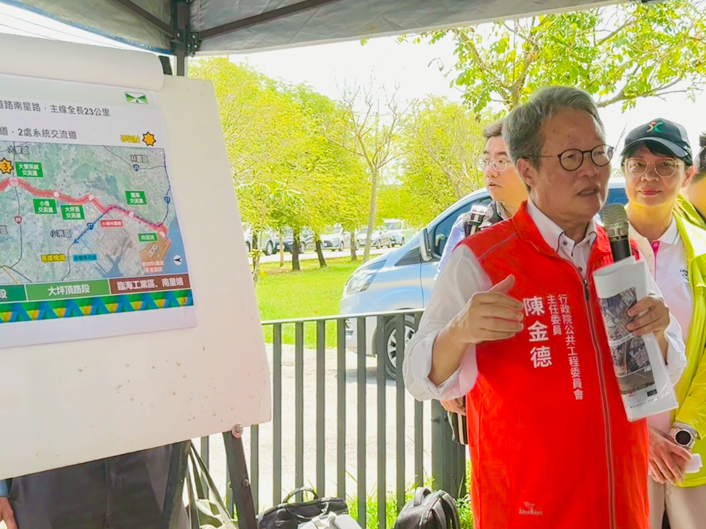 在行政院南部聯合服務中心副執行長謝文斌、交通部高公局、國家發展委員會、高雄市政府等單位陪同下,陳主委一行前往仁武、鳳寮及大寮等交流道預定地現勘,陳主委表示,交通部自96年啟動國道7號規劃,歷經17年籌備評估含12年環評審查,終於迎來最後一哩路,而為了加速工程推動,陳主委特別要求高公局採7標併行方式進行,達成119年7月完工的目標。此外,由於高雄捷運黃線、小港-林園線、高屏2快、高鐵延伸屏東等多項重大交通建設也將陸續進行,陳主委也請高公局務必與高雄市政府定期溝通、檢討工程相關介面問題,讓每一項公建都能依時程順利推展。