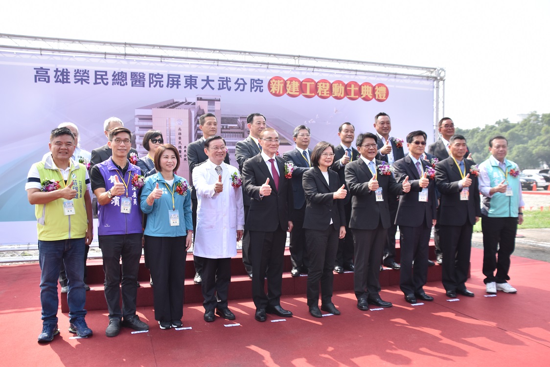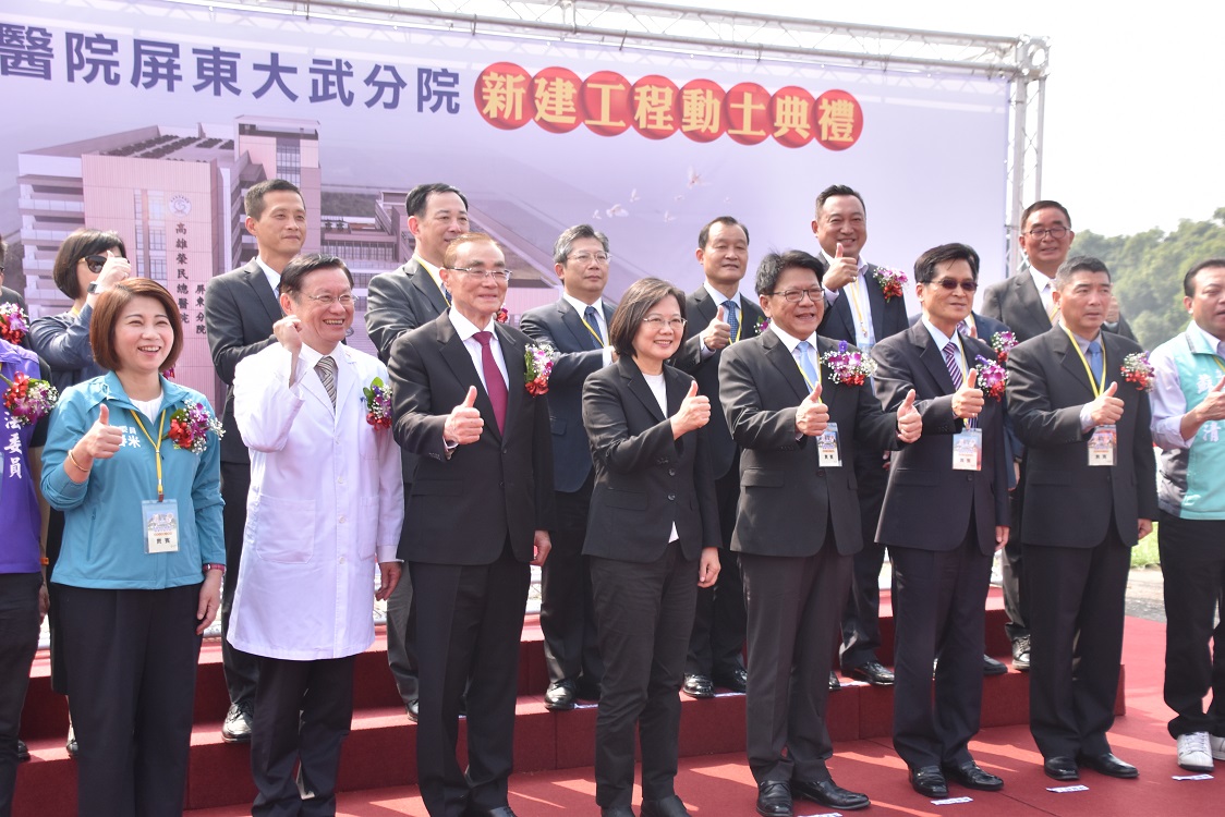 屏東人所引領期盼的區域級、急重症後送醫院終於來了,高雄榮總屏東大武分院,在經過政府、屏東縣、退輔會及軍方歷經兩年的用心規劃,今(5)日邀請到蔡英文總統舉行動土典禮,現場包括輔導會主委馮世寬、高雄榮民總醫院院長劉俊鵬、屏東縣長潘孟安、行政院南部聯合服務中心執行長陳政聞及多位立委都一同蒞臨,見證這歷史性的一刻。