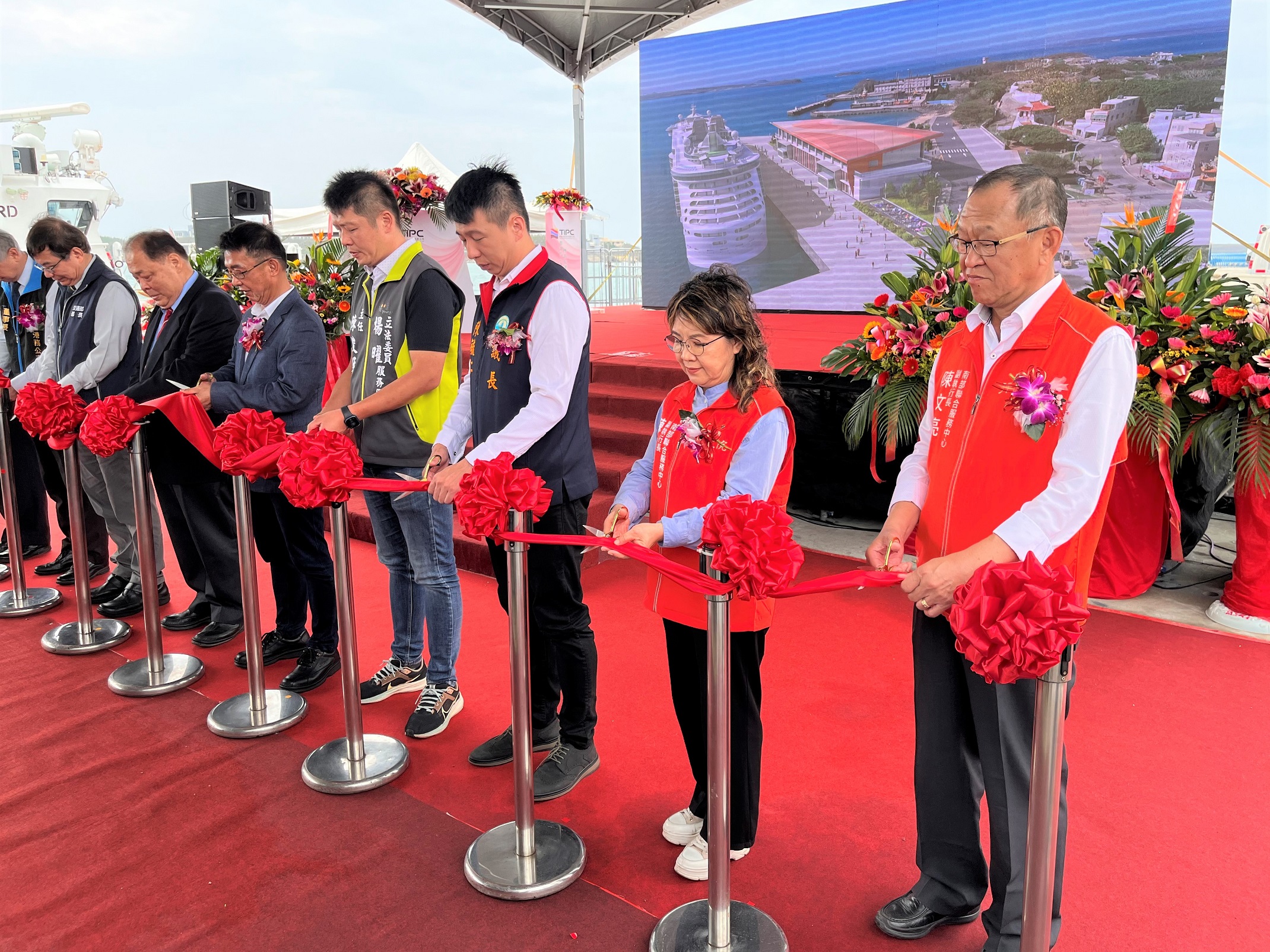 由中央政府出資、臺灣港務公司打造完成馬公港1號國際郵輪碼頭延建工程,於今(25)日舉行啟用典禮,由交通部王國材部長、澎湖縣陳光復縣長、許智傑、楊曜立委、臺灣港務公司李賢義董事長、航港局葉協隆局長、行政院南部聯合服務中心陳文亮副執行長及陳慧玲副執行長等貴賓共同主持啟用儀式。