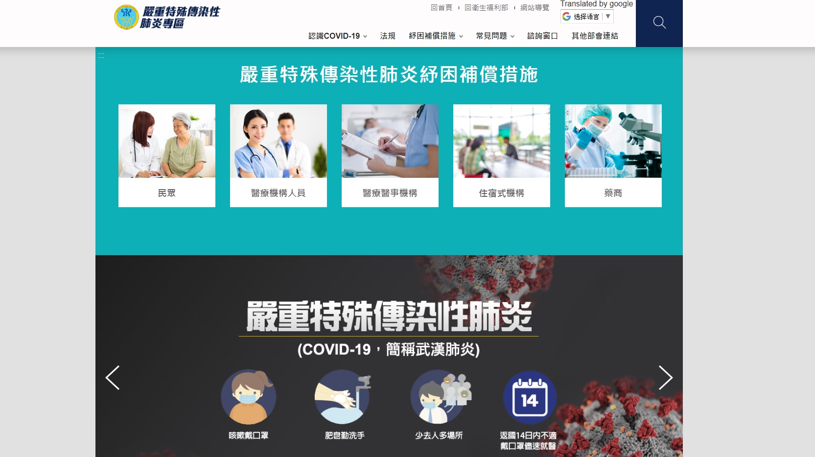 因新冠肺炎影響,衛生福利部提供民眾、醫療機構人員、醫療醫事機構、住宿式機構及藥商等紓困補償措施,首先在受隔離、檢疫者及照顧者,符合資格者在隔離及檢疫期間發給每日1千元補償金,根據衛福部統計,自3月23日先行開放受理受隔離或檢疫者防疫補償申請,截至109年3月30日上午8時止,已有1萬1676件提出申請。