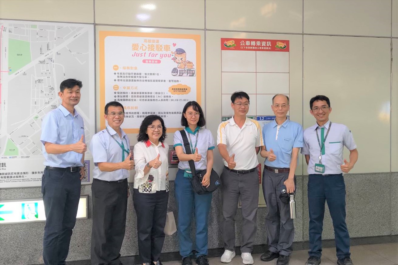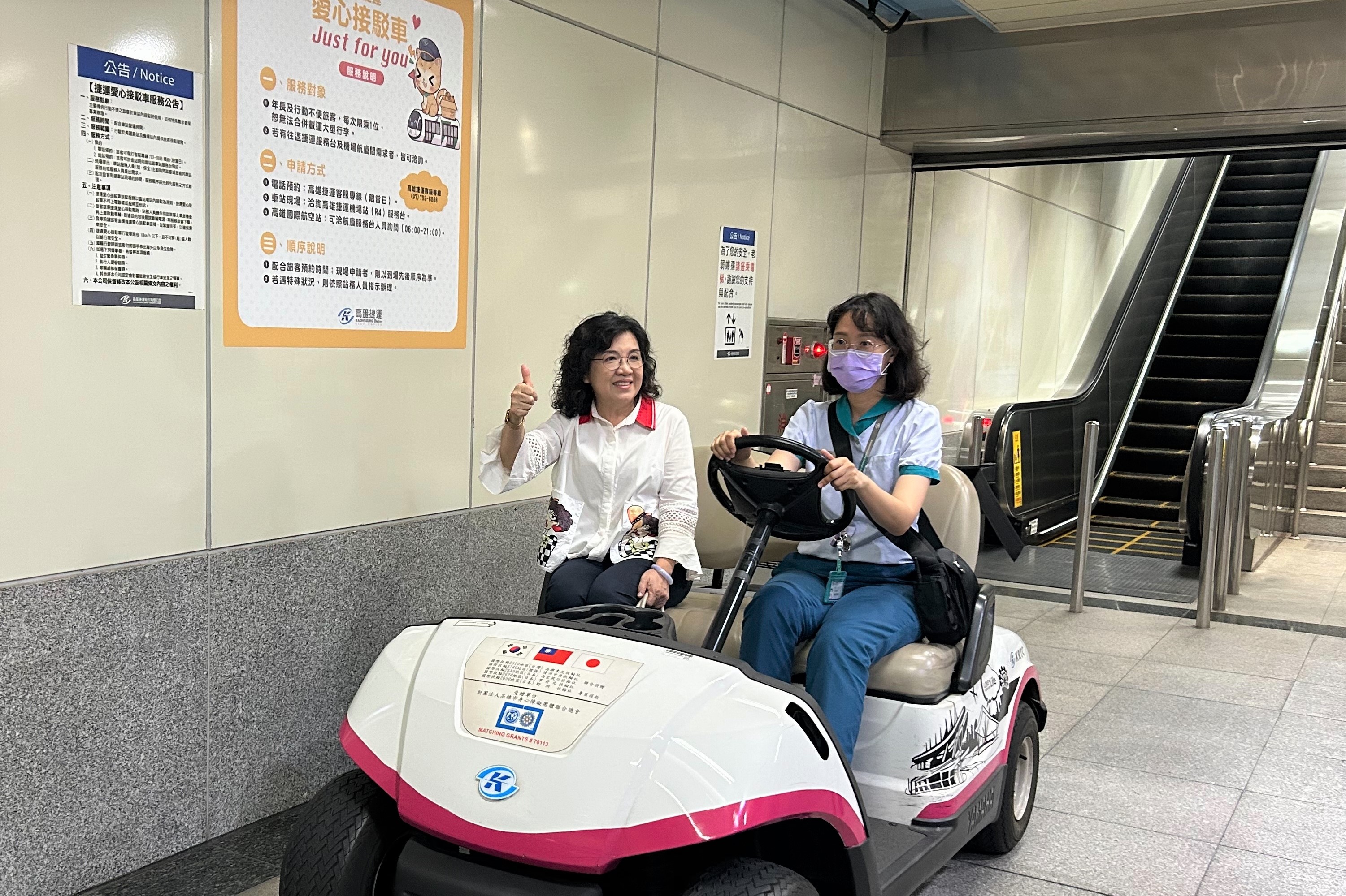 高雄捷運公司在高雄國際機場站(R4)設有高爾夫球電動車接駁服務,提供行動不便或特殊需求之旅客貼心服務,,陳慧玲副執行長於今(31)日率中心同仁,以實際行動前往體驗愛心移動式接駁車服務。