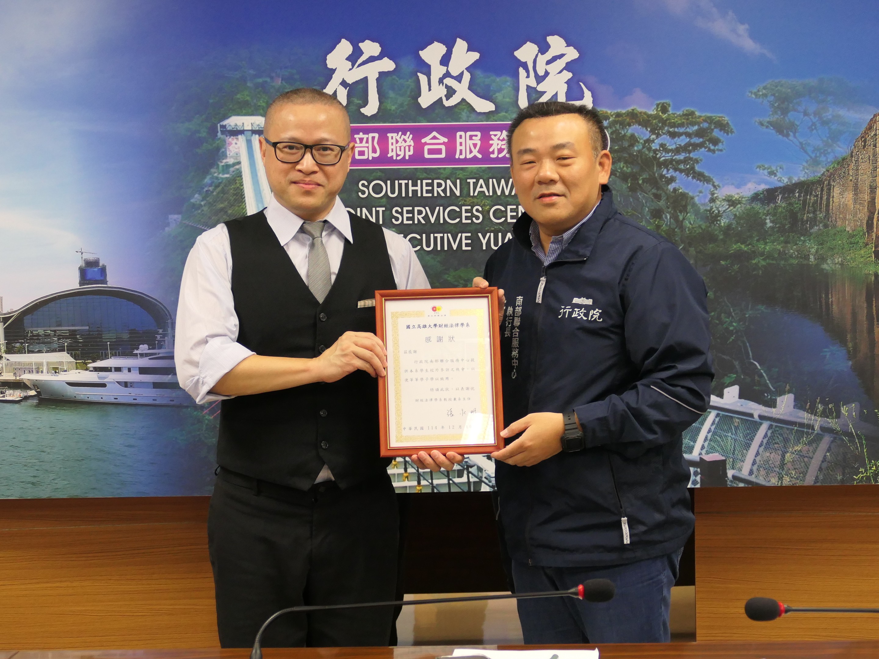 高雄大學財金法律系謝國廉教授提到,兩校合作計畫已推動逾19年。他認為,南服中心是極具關鍵性的行政單位,希望透過此次參訪,讓相關科系的學生能全面且深刻地認識政府運作實務。日本札幌大學黃昕教授則表示,期盼透過此次參訪,加深日本學生對台灣,特別是高雄社會文化的認識,並促進日本跟臺灣青年之間的交流與合作。