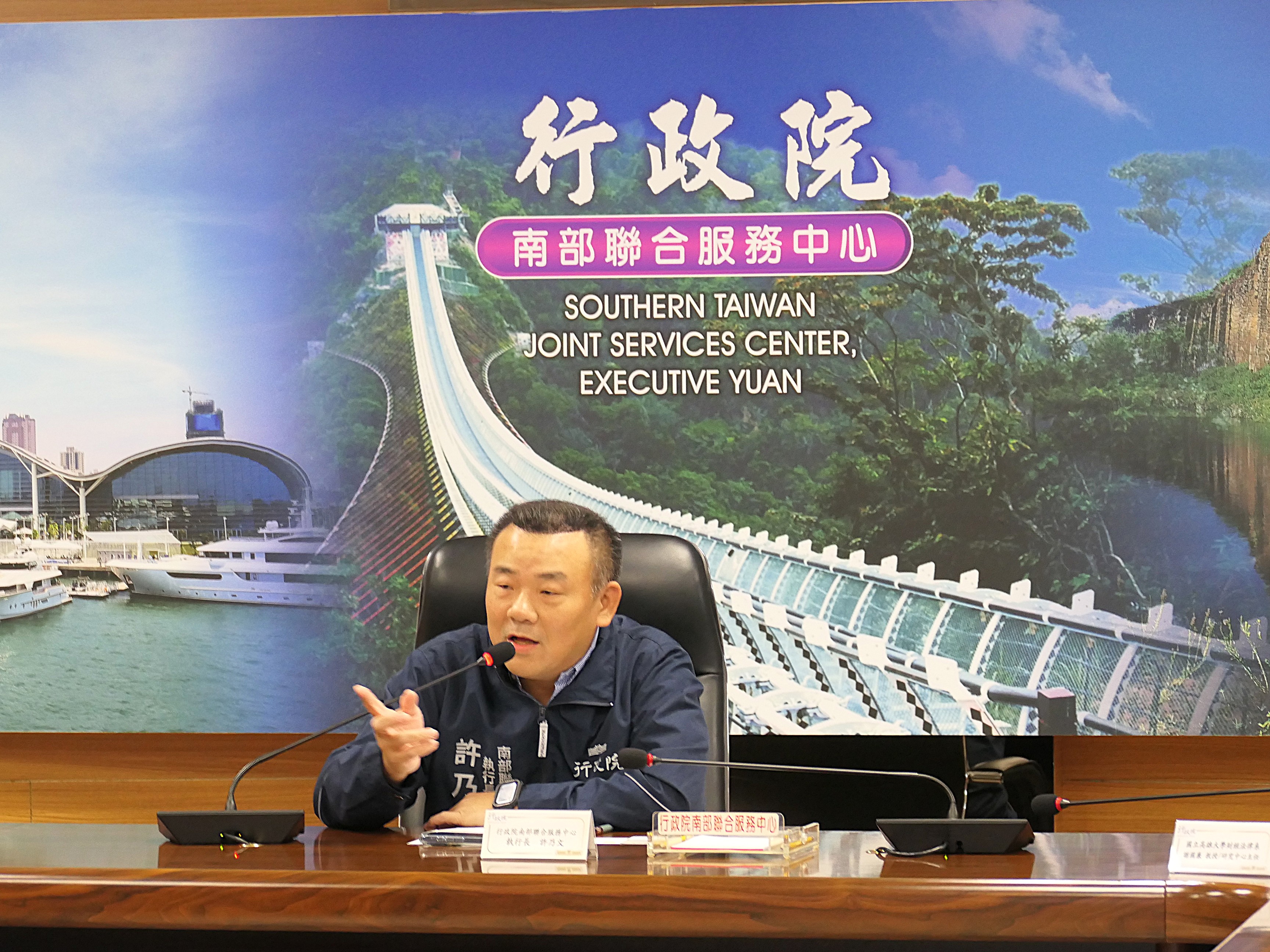 南服中心執行長許乃文表示,中心成立宗旨在於均衡南北發展、縮小區域差距。中心成立逾二十年,目前已有17個部會進駐,每日服務量超過3,000人次。他舉例,南部民眾如今不必北上,即可在地辦理護照等證件,大幅節省時間與交通成本。