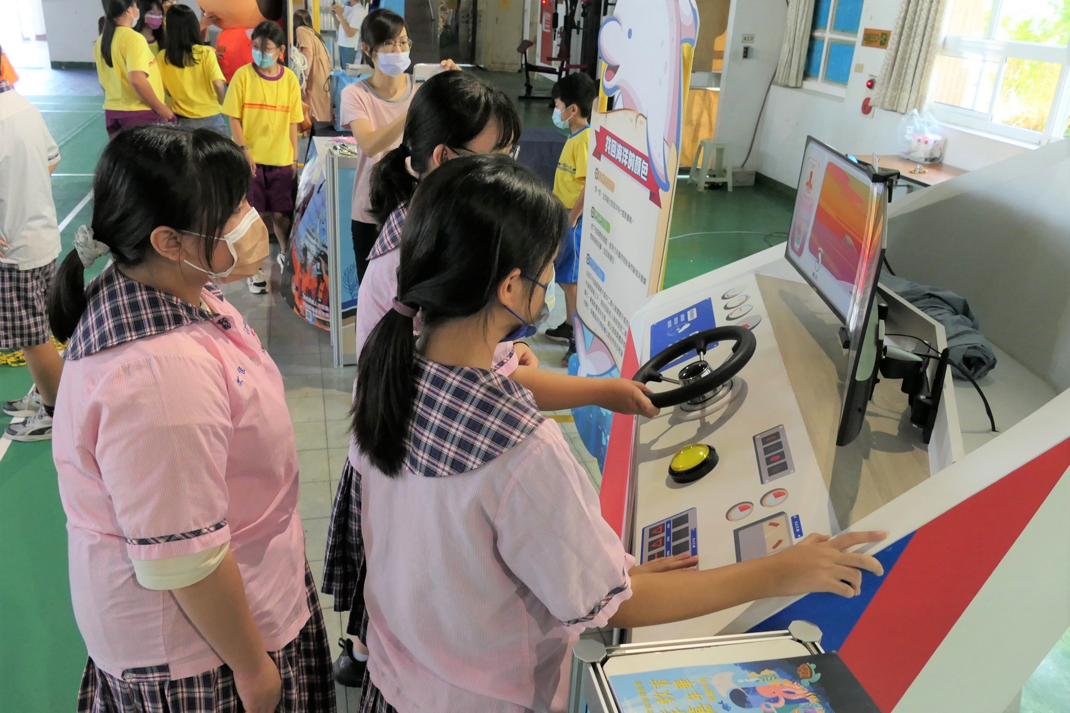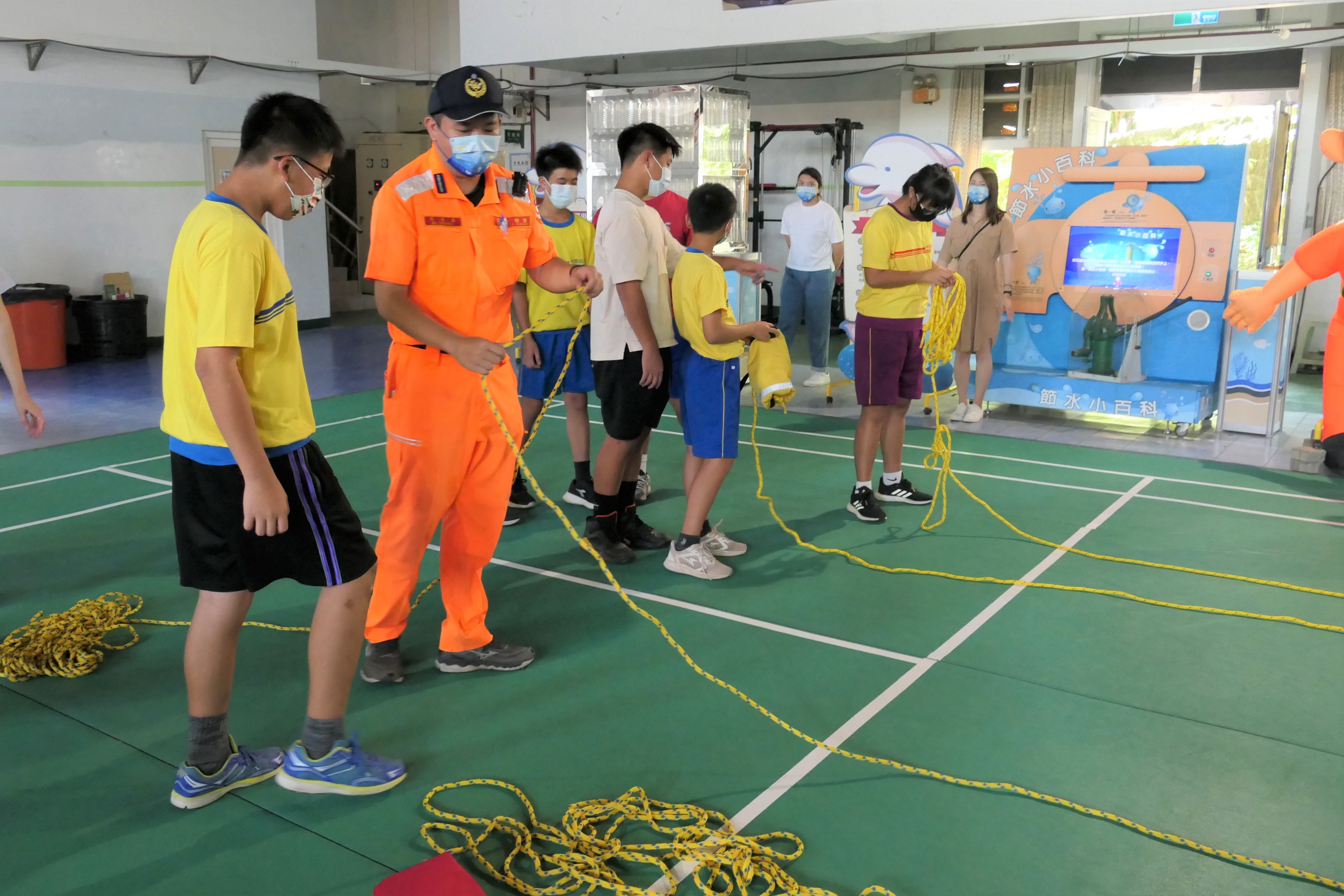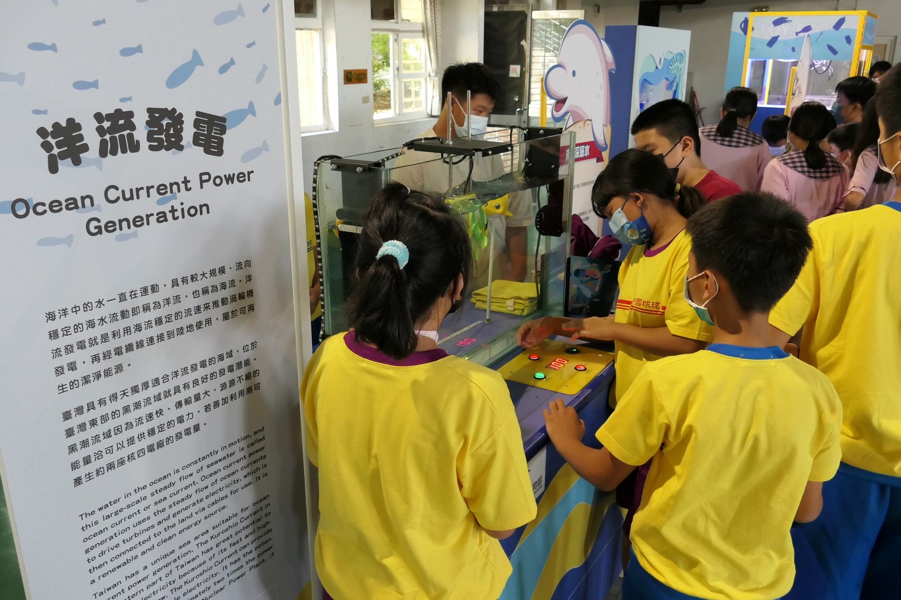 此次展出體驗教具,包含波浪發電、水流發電、海洋深層水、離岸風電VR等教具,以及海洋顏色、海洋保衛站行動愛海洋等互動遊戲,讓現場琉球國中的同學們透過有趣動手體驗對海洋再生能源及資源開發的認識。另外,海巡署南部分署也由海巡同仁以各項裝備包含拋繩袋、手持式熱顯像儀、海洋驛站介紹等與學生互體驗,留下深刻印象。