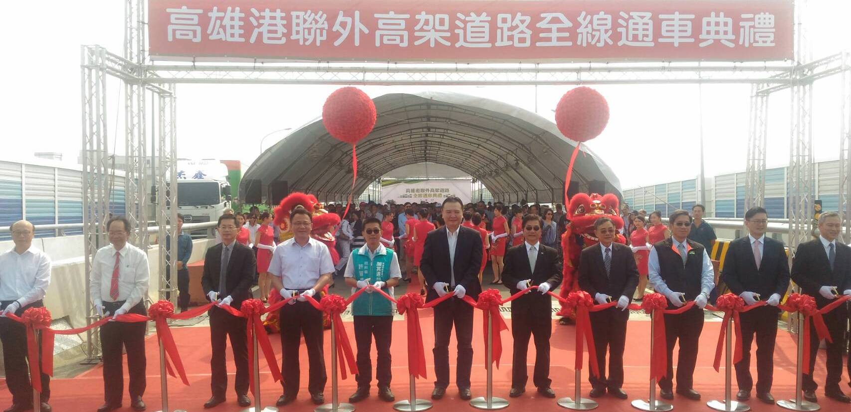 【高雄/報導】高雄港聯外高架道路9日由交通部祁文中次長親臨主持全線通車典禮,在高雄市許立明代理市長、行政院南部聯合服務中心黃義佑執行長、高雄港航商業者與各機關代表共同見證下,典禮順利圓滿成功。高雄港聯外高架道路全線通車可望提升高雄港運輸效率及競爭力,並可達成客貨車分流,減輕貨車行駛漁港路及新生路等平面道路所帶來之交通衝擊。
