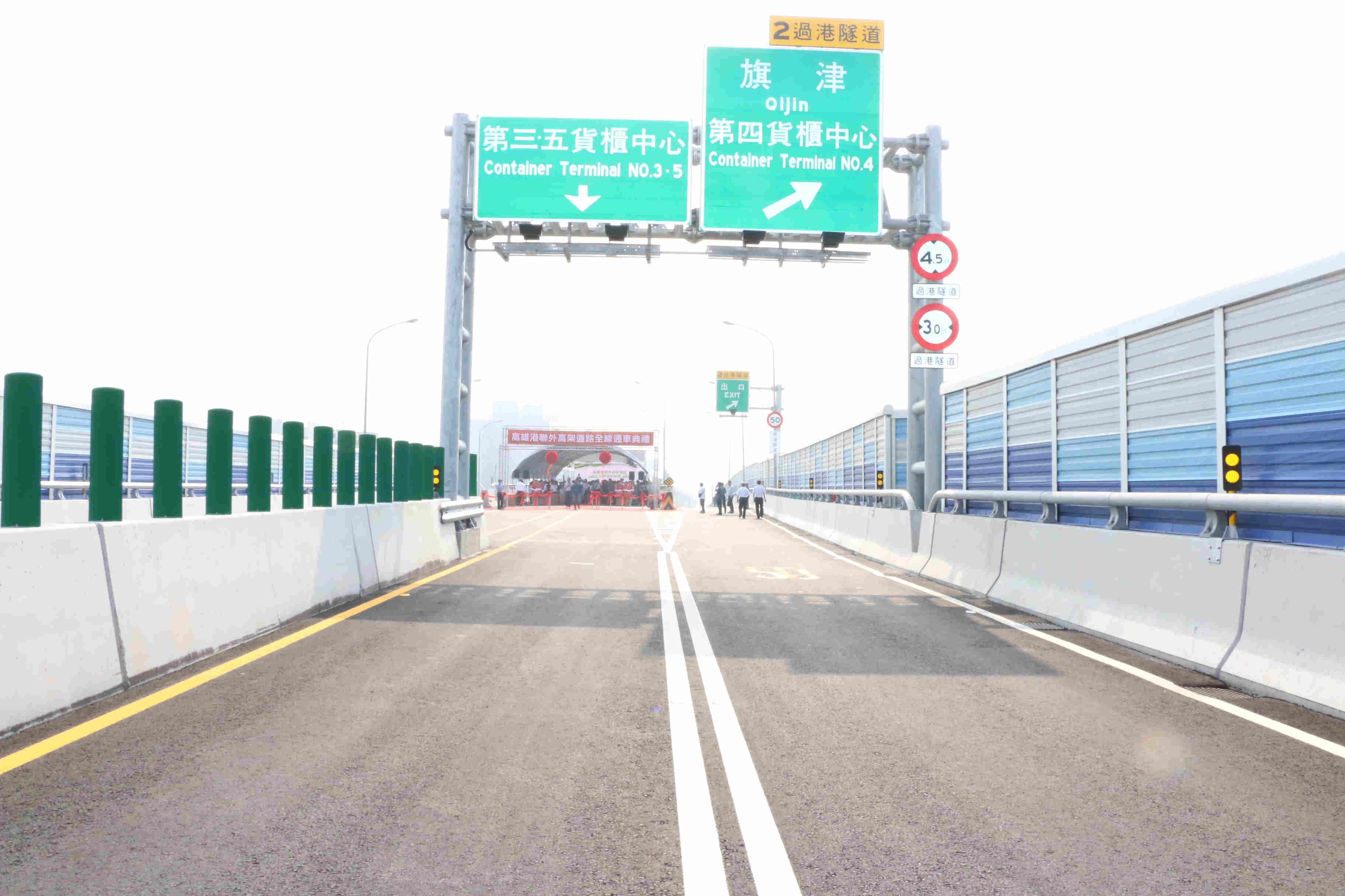 港務公司吳宗榮董事長表示,高雄港聯外高架道路計畫歷經沿線土地取得、地下管線遷改等挑戰,全線通車將有效提升高雄港競爭力。而國道7號是未來洲際貨櫃中心聯外主要幹道,更是高雄港整體路網建設的最重要的一塊拼圖;港務公司目前已展開高雄港第七貨櫃中心招商作業,未來更將積極協助未來國道7號高速公路之推動,以創造友善投資環境與經營利基,同時也請在座各位長官及業者能夠支持國道7號建設計畫的推動。