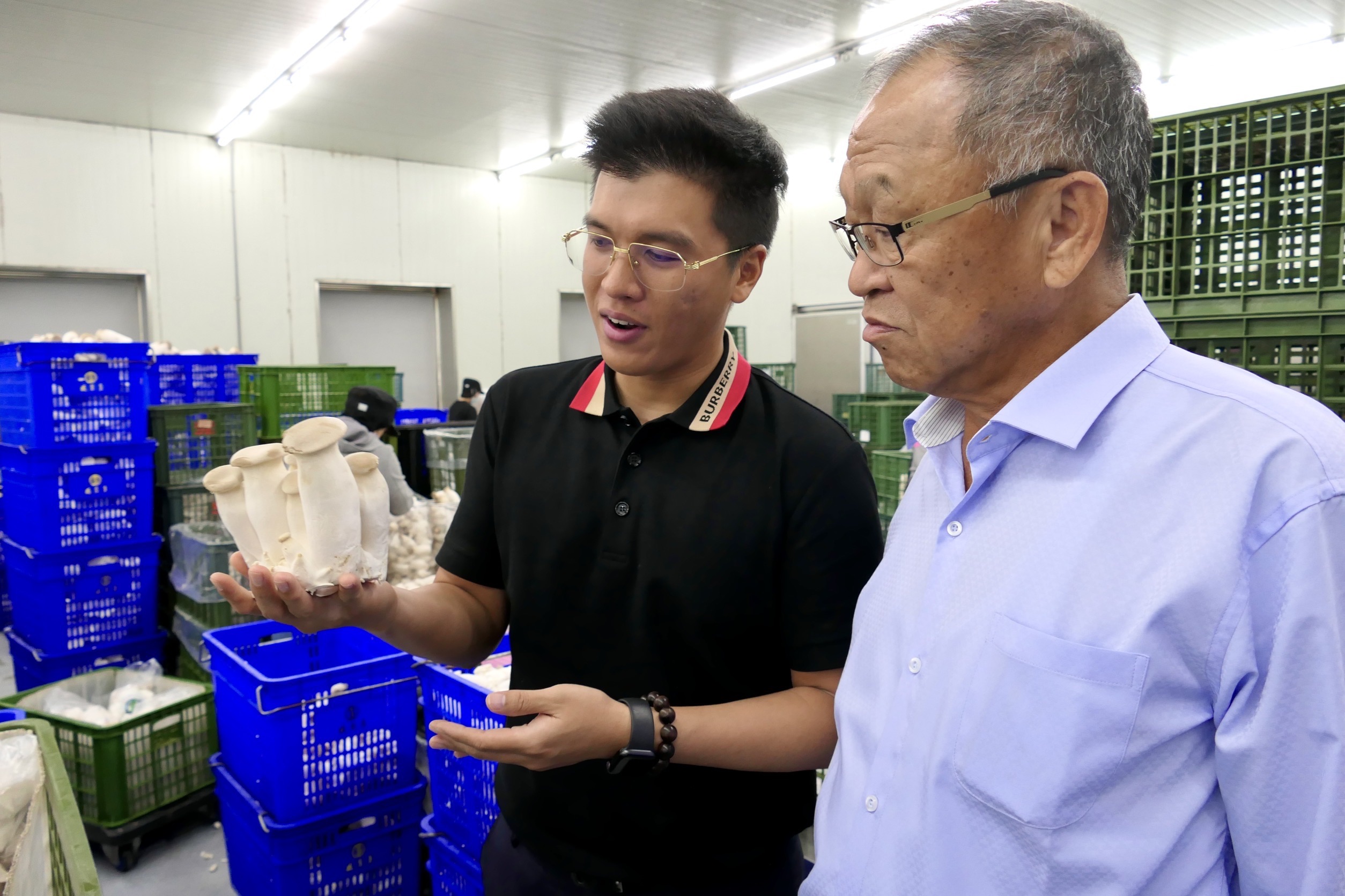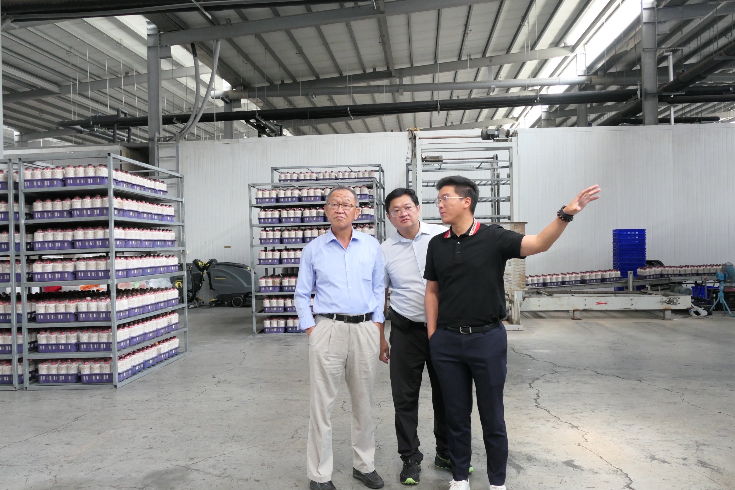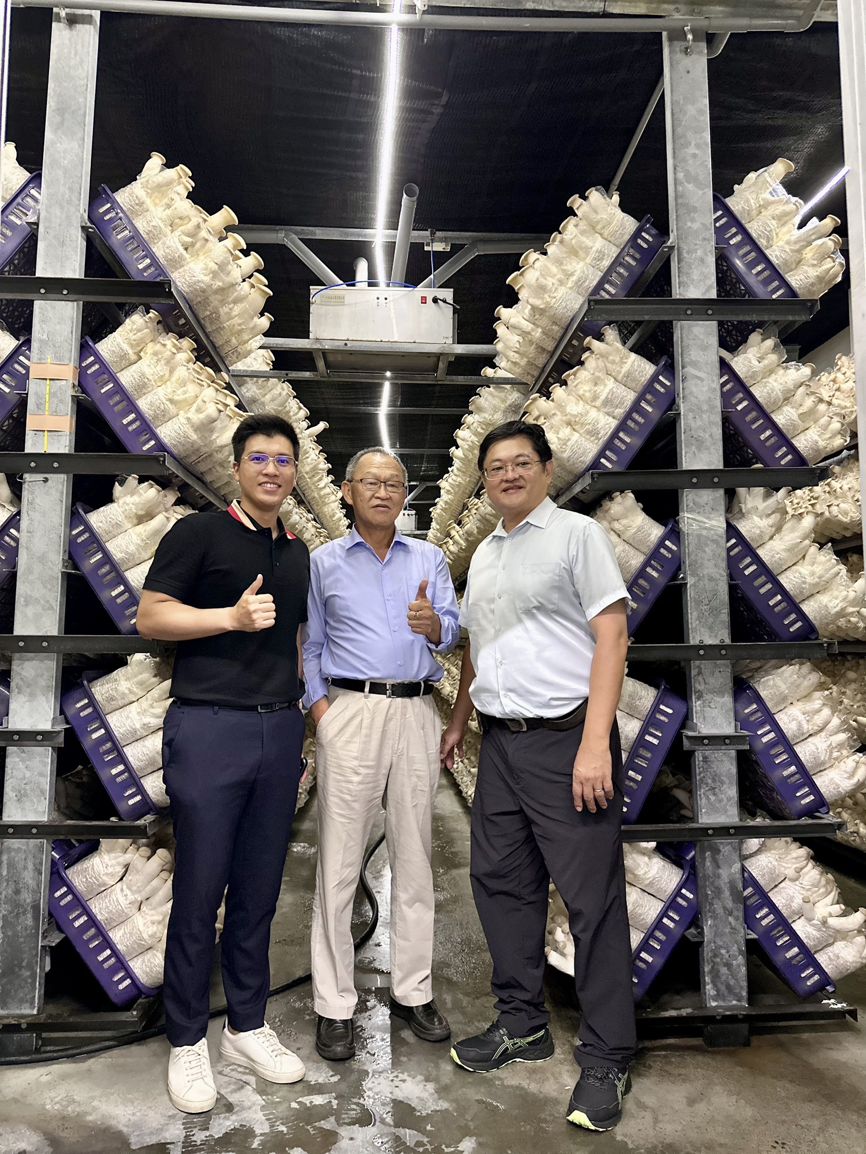 該業者位於屏東縣,是全台規模最大的杏鮑菇生產場,其年產量約占全台總產量的兩成。業者原本從事養豬業,多年前成功轉型,結合綠能光電打造自動化溫室,並持續擴大場區,目前1.65公頃的杏鮑菇場,導入自動化製程與環境監控系統,從原料進口、太空包製作、種植到採收、包裝與冷鏈運輸,實現一條龍作業,以穩定品質與供貨量。