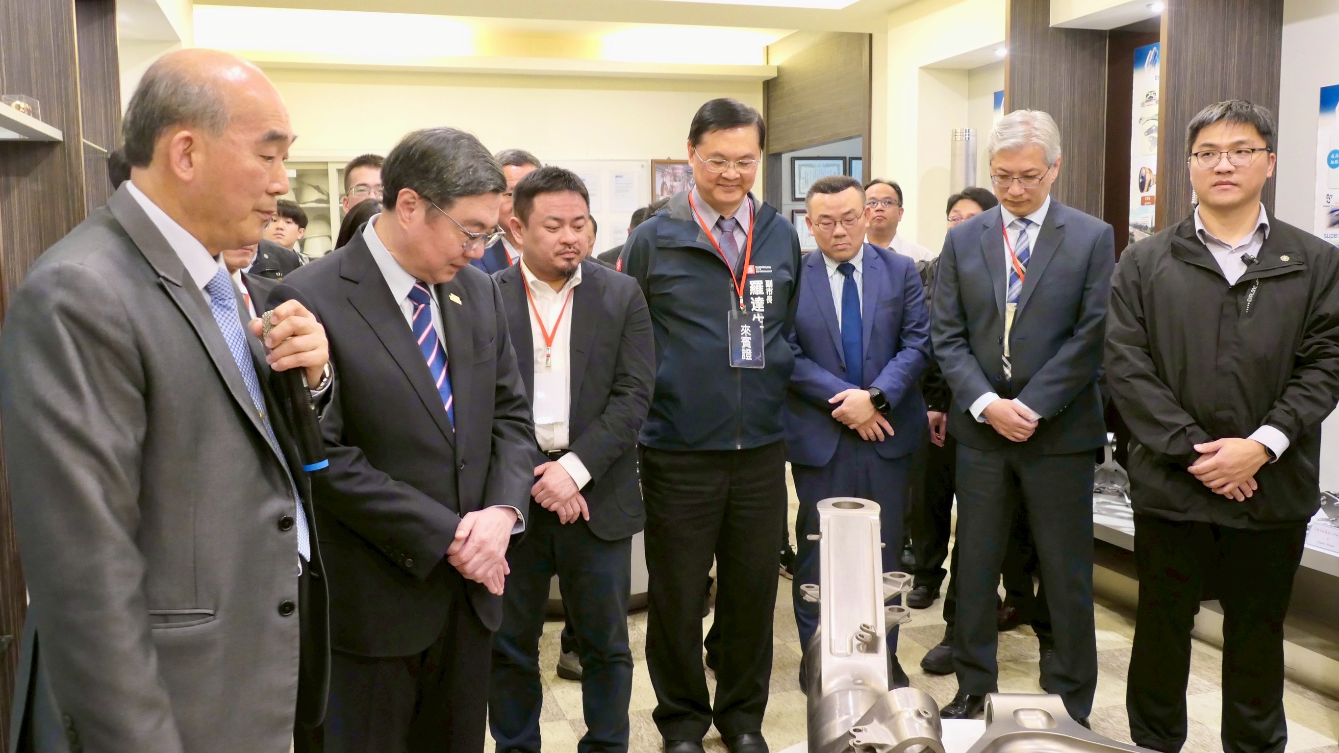 卓院長指出,賴清德總統多次提及「競逐太空、探索海洋」的國家發展方向,在「探索海洋」方面,國造潛艦「海鯤號」已於昨(29)日完成首次潛航測試,在水密性及平衡穩定性獲預期成果,象徵我國潛艦國造技術向前跨出重要一步;在「競逐太空」方面,我國航太軍工產業產值已突破1,600億元,顯示臺灣從一般性工業產品升級製造高科技精密產品的實力,例如稍早參訪的晟田公司從早期經營食品業、金屬業,升級轉型後,跨足至航太產業。