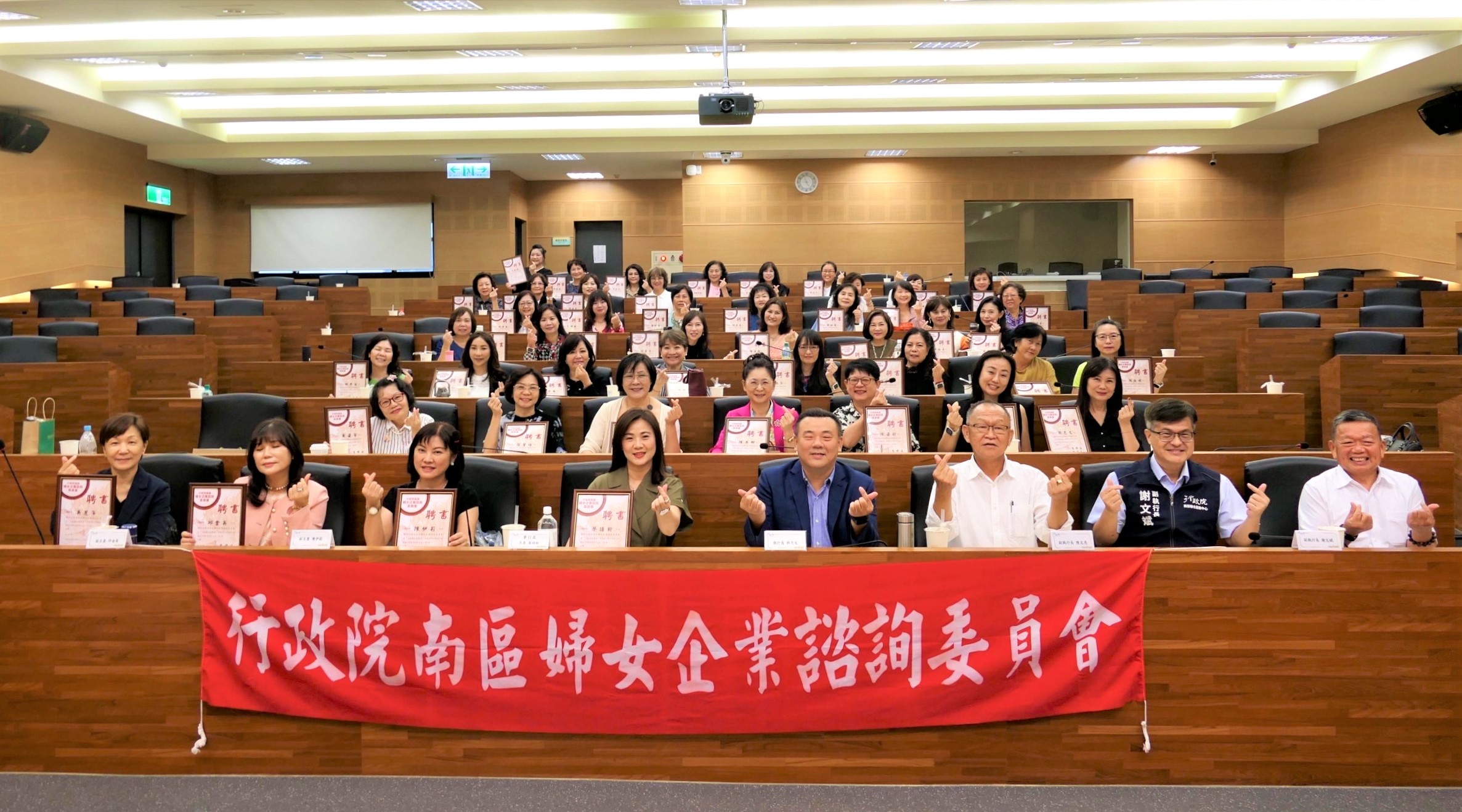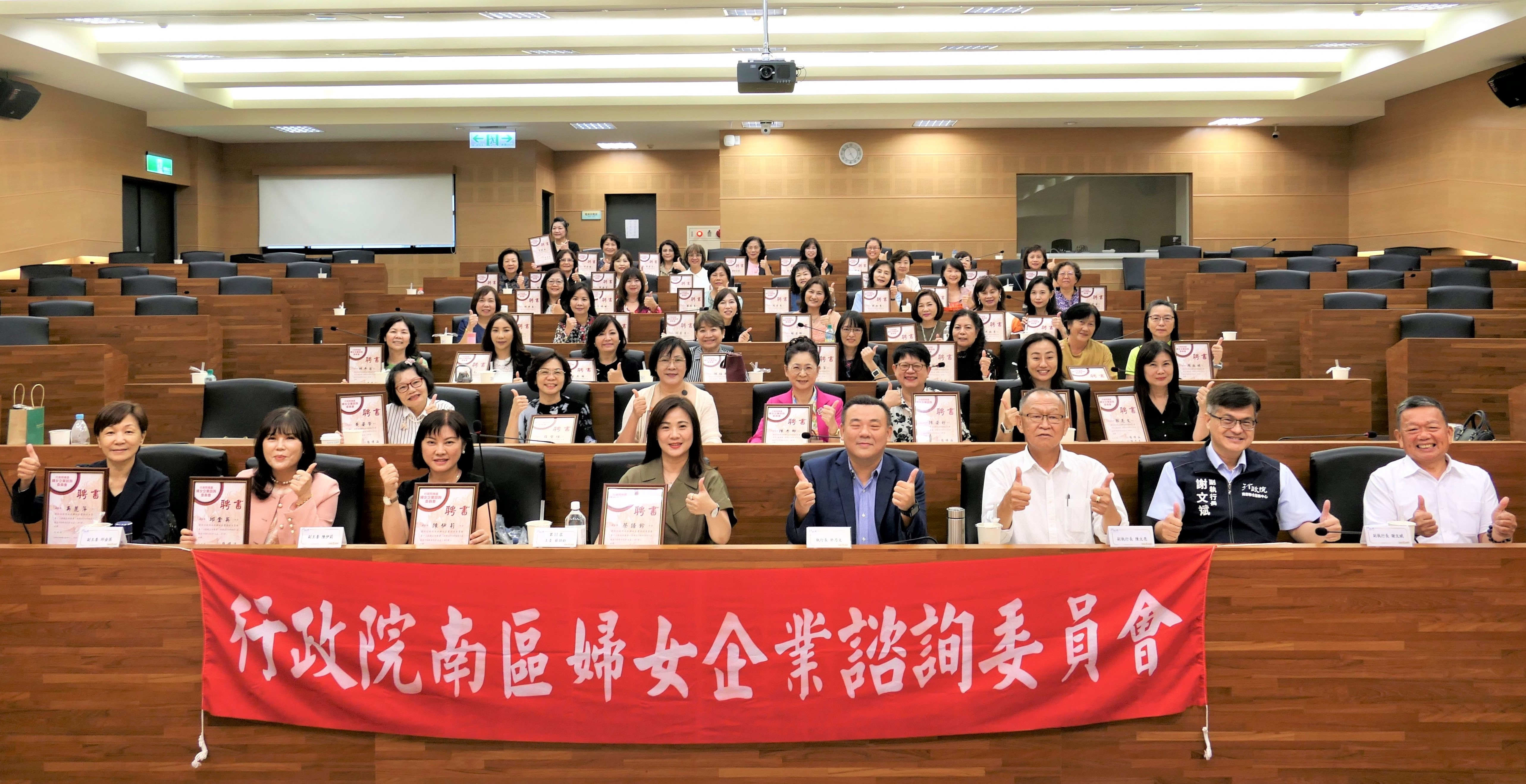 行政院南部聯合服務中心今(18)日舉行第12屆行政院南區婦女企業諮詢委員會授證典禮,來自高雄、屏東、澎湖的64位女性企業代表正式受聘為南區企業婦女諮詢委員,將共同扮演政府與產業溝通的橋樑,協助政策落實與企業發展。本屆由「大吉汽車」副董事長蔡語鈴續任主任委員、「中洲建設股份有限公司」董事長特助邱金英及「和樂旅行社有限公司」負責人吳麗萍續任屏東、澎湖區副主任委員,本屆更增聘「高屏工程有限公司」董事長陳伊莉為高雄區副主任委員。