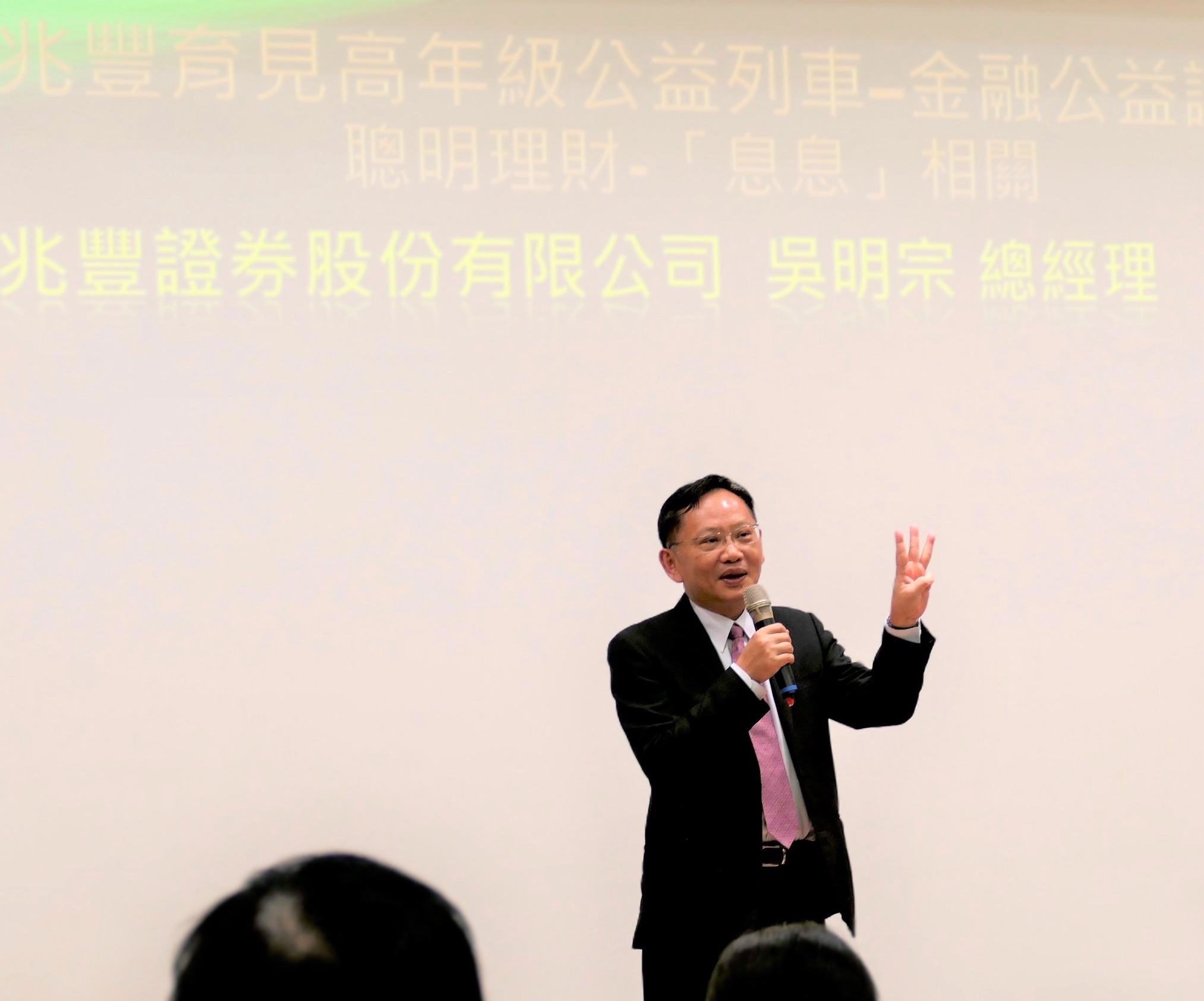 講座首先由兆豐證券分公司協理李松穎主講「聰明理財-息息相關」,以簡單易懂的方式介紹股票、債券和ETF,並分析優缺點及適合族群,他提醒投資人「高息往往伴隨高風險」,應謹慎評估風險與報酬的關係。