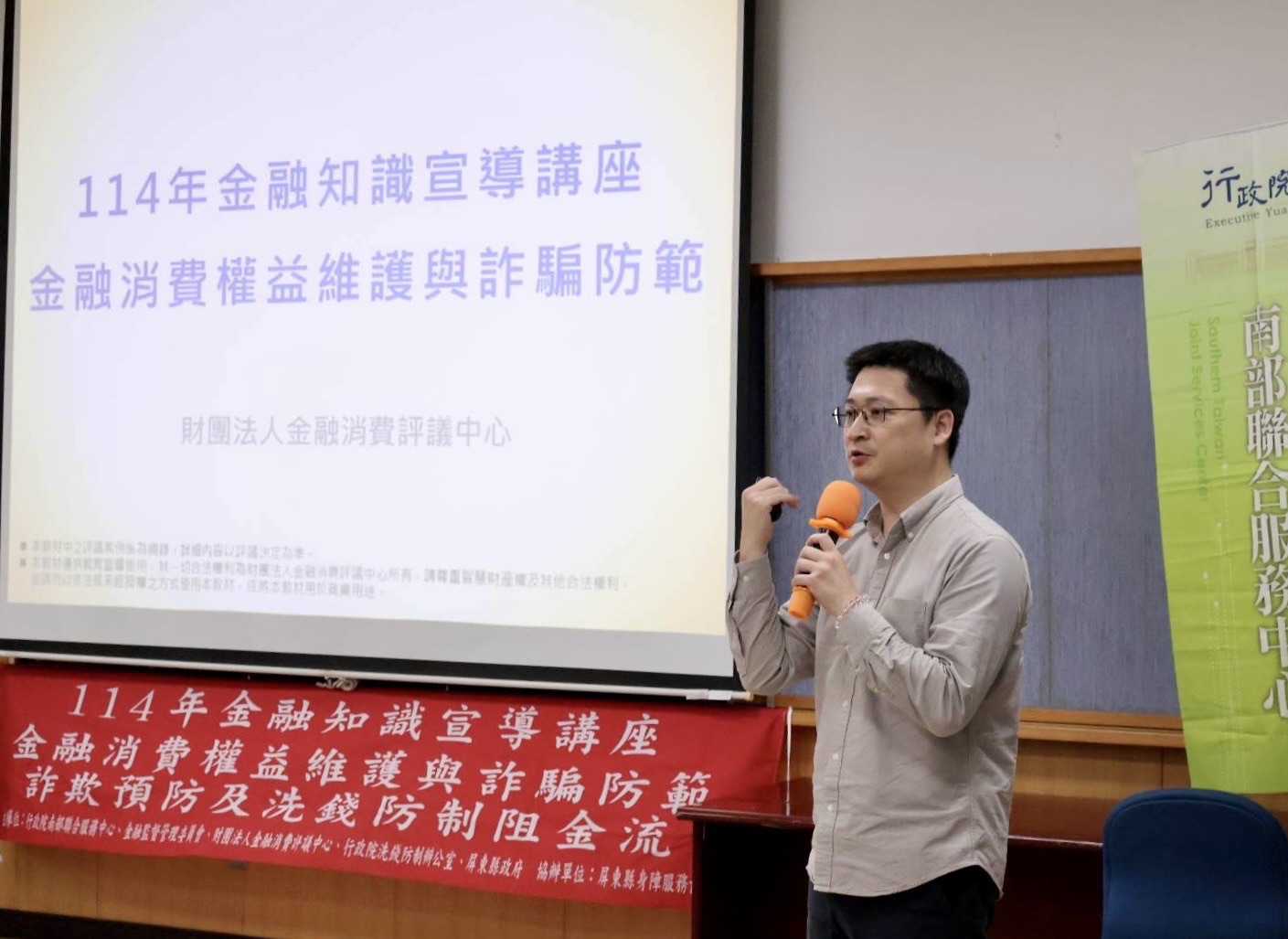 南服中心陳文亮副執行長表示,目前詐騙案件頻傳且手法多元,民眾唯有強化金融知識,才能保護個人財產安全。中心多年來持續規劃系列講座,正是希望民眾將防詐觀念內化至日常生活中,讓「防詐不是口號,而是習慣」。