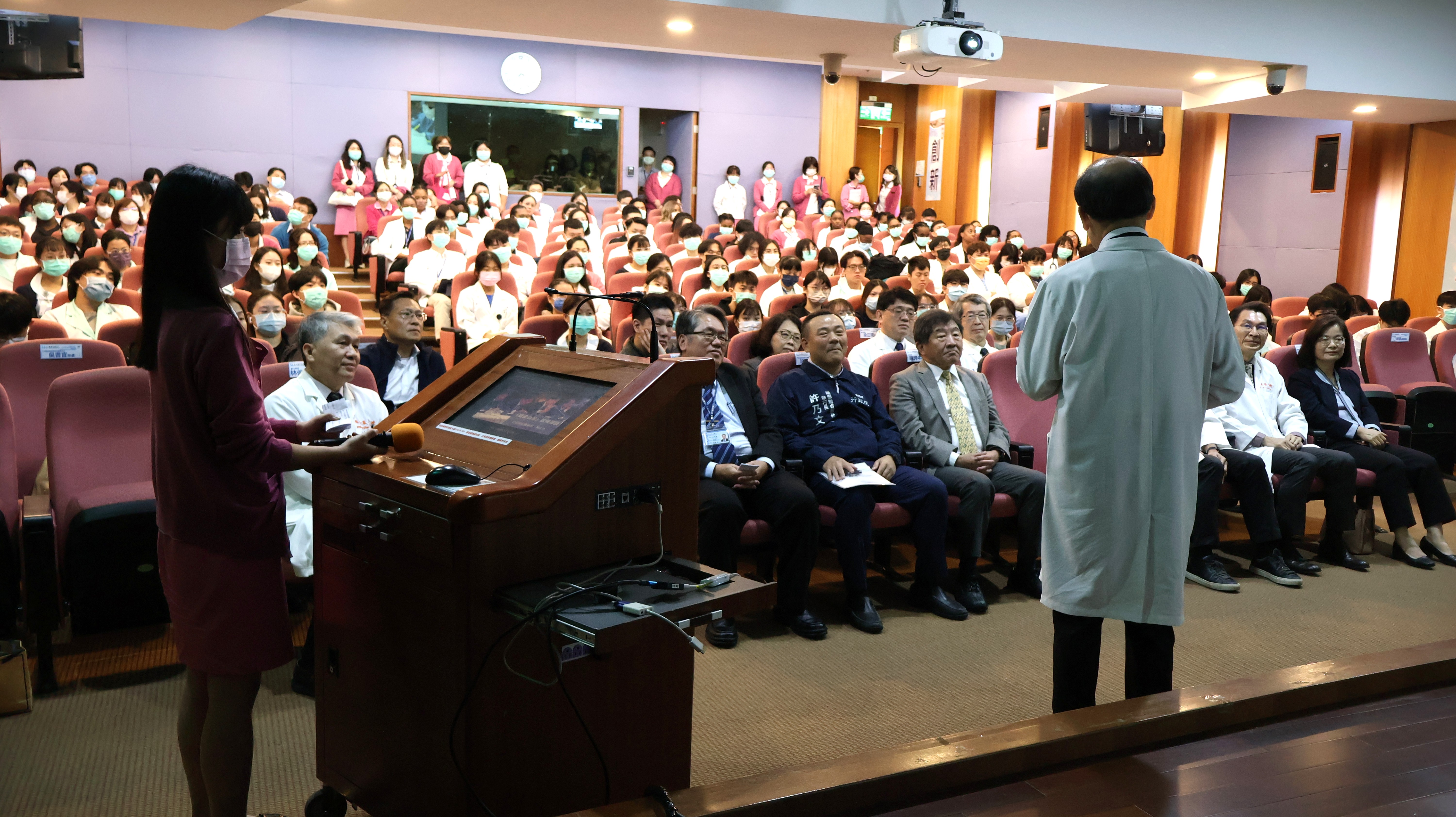 義大醫院院長杜元坤提到,義大醫院於2025年經醫院評鑑升格為醫學中心,提升重大疾病治療能力,為高屏地區居民提供更高品質的醫療服務。總統在醫療政策的推動上,也長期仰賴陳政委以專業與決心協助,透過本次課程,不僅能讓大家更清楚理解政府的健康政策,也能感受到政府守護國人健康的用心。