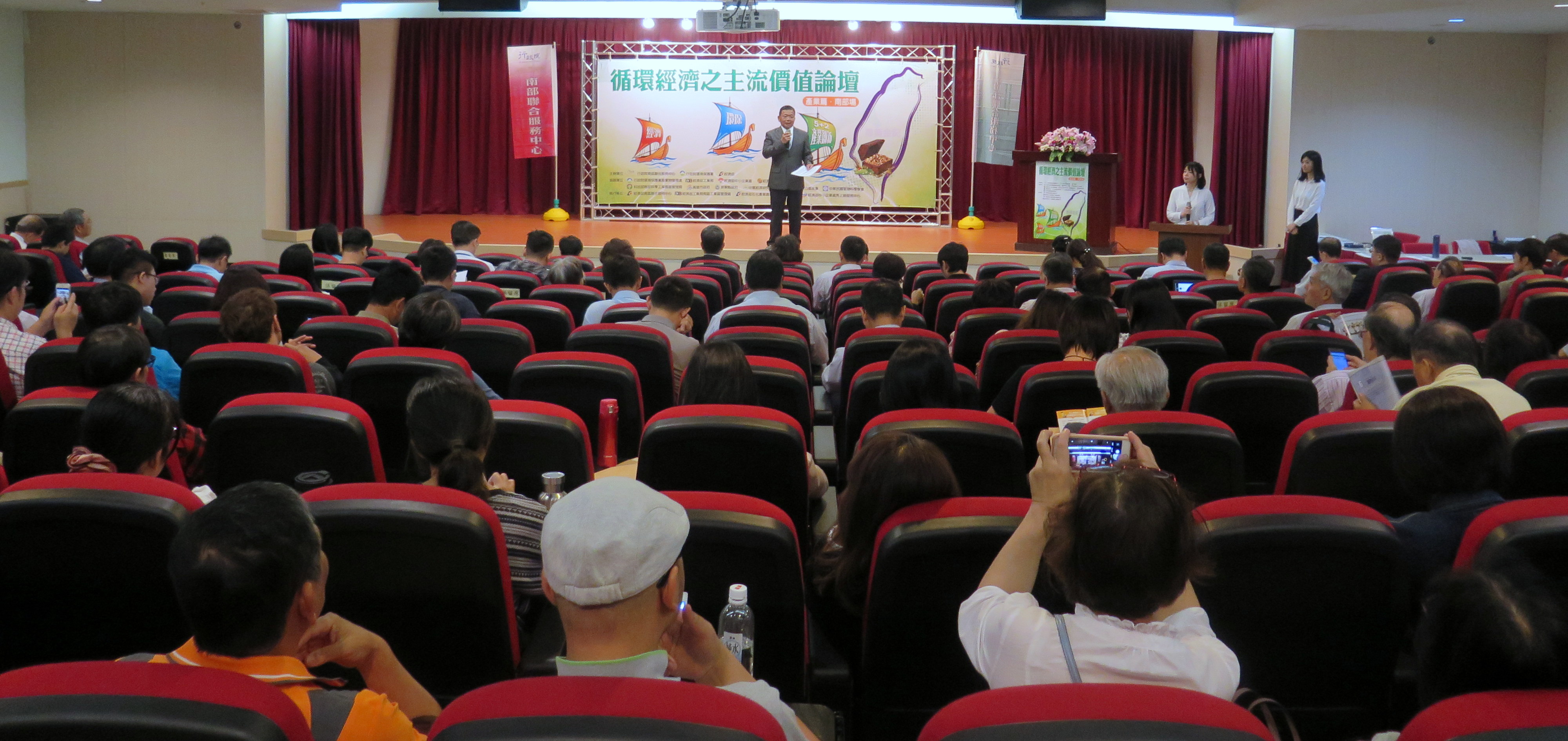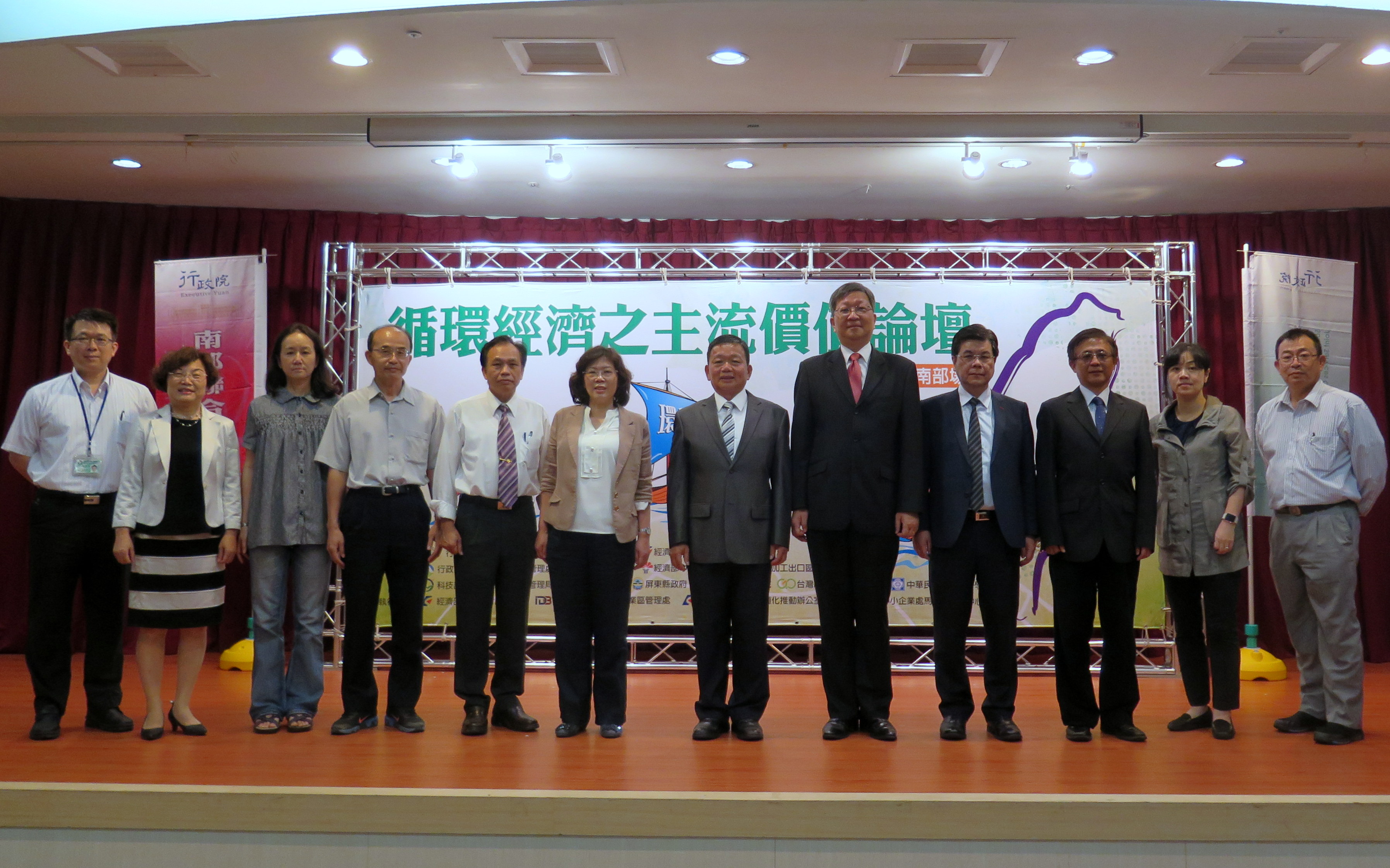 「循環經濟之主流價值論壇」在行政院南部聯合服務中心第三組召集人林進添致詞下揭開序幕,行政院環境保護署廢棄物管理處長賴瑩瑩、經濟部工業局副局長游振偉、經濟部加工出口區管理處組長嚴小梅、濟部工業局南區工業區管理處執行長郭阿梅、經濟部石化產業高值化推動辦公室執行長黃國維、高雄市政府經濟發展局主任秘書呂德育等貴賓在場,共同展現支持產業推動循環經濟發展的決心。