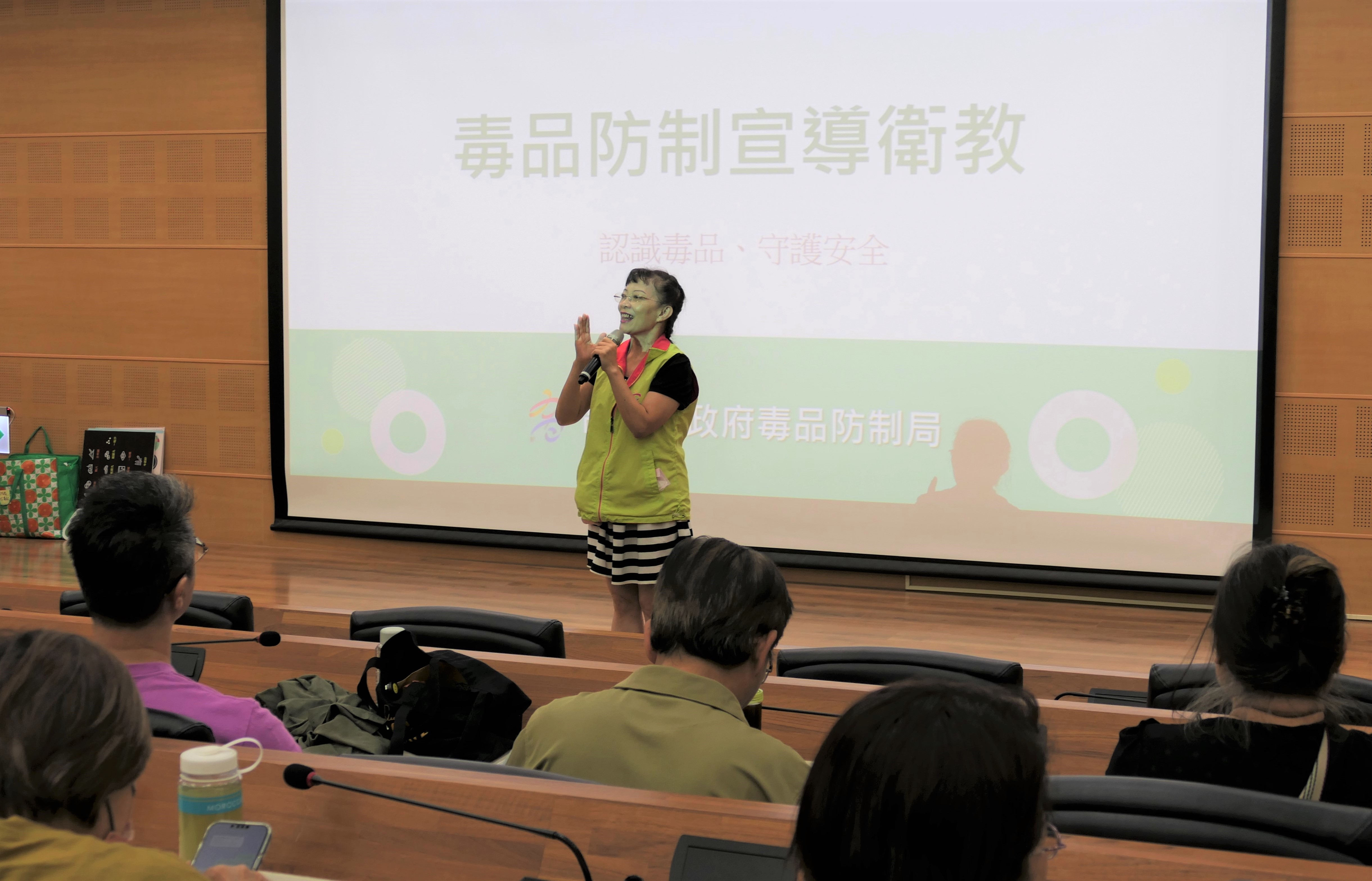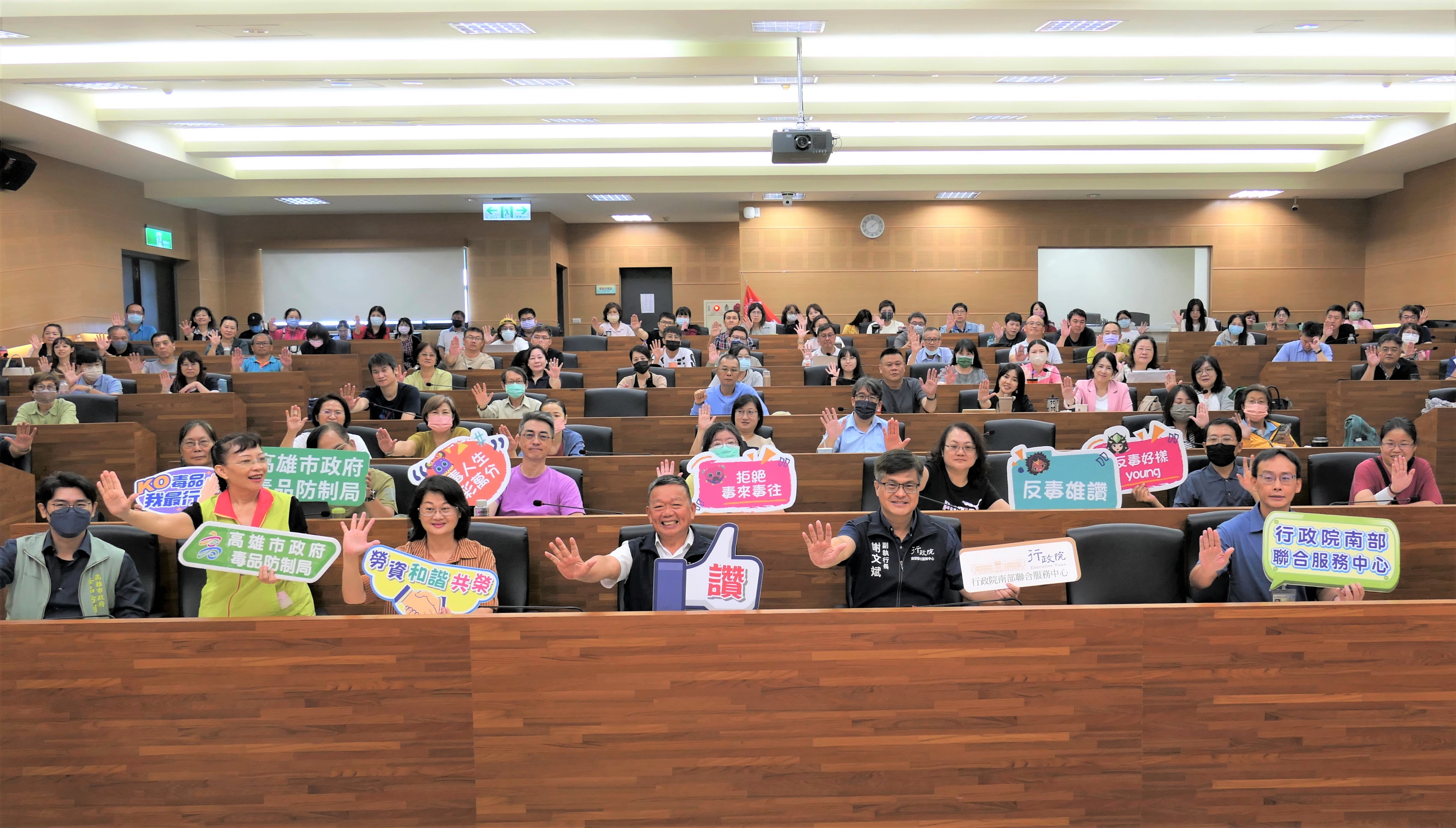 課程開始前,由高雄市政府毒品防治局技士何幸玲進行毒品防治宣導。她提到,近年毒駕案件逐年攀升,已嚴重威脅用路人安全。她說明吸毒後常見的徵兆,協助企業主與人資主管及早辨識員工是否涉毒。最後,何技士提醒,若遇到毒品相關問題,可撥打24小時免費毒防諮詢專線0800-770-885(請請你、幫幫我)尋求協助。
