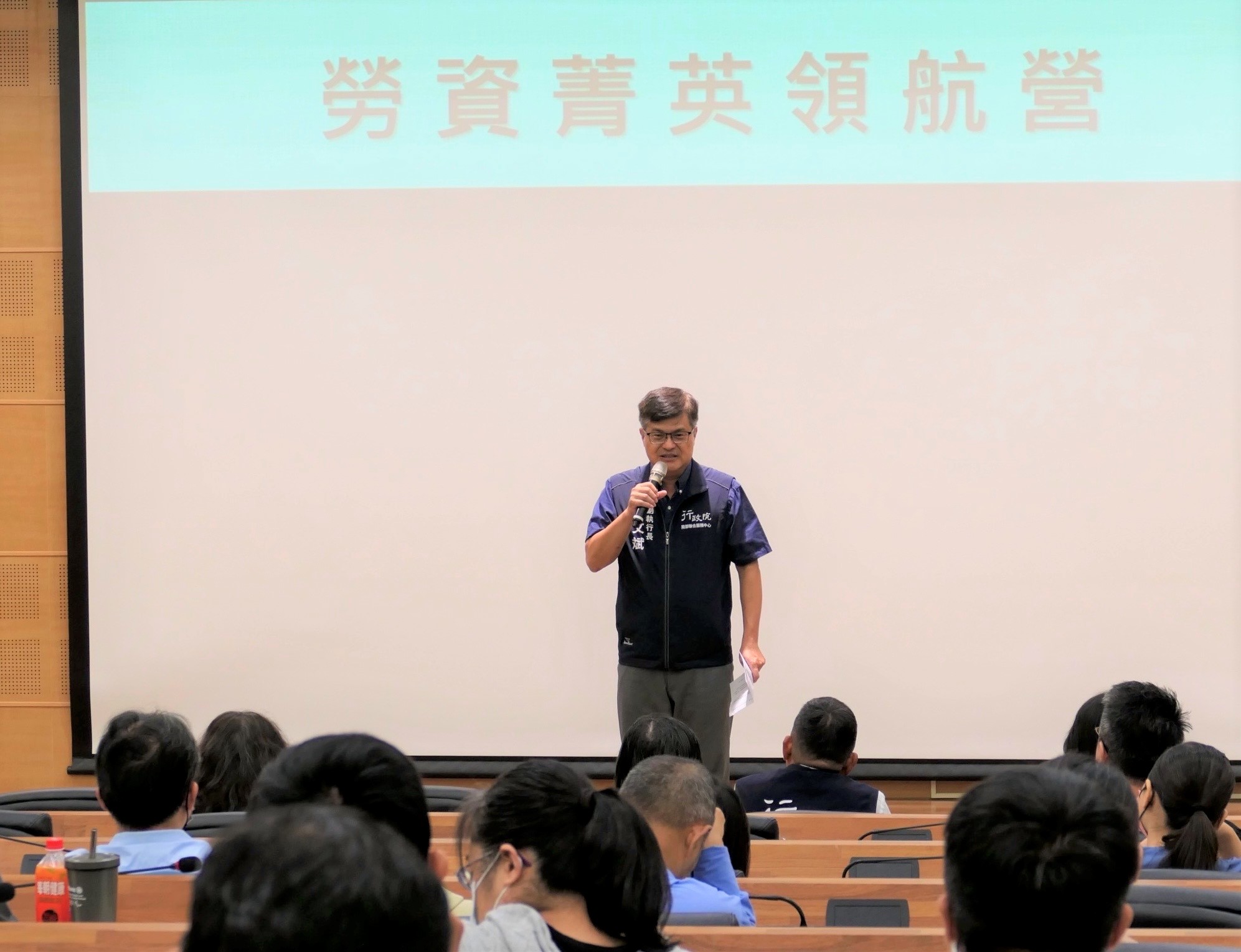 為提升勞資雙方對勞工退休與災保權益的認識,行政院南部聯合服務中心(17)日舉辦「勞資菁英領航營」,邀請勞工保險局高雄市辦事處傅育奇領組主講相關法規,吸引逾百位企業負責人、人資主管和工會幹部參與。