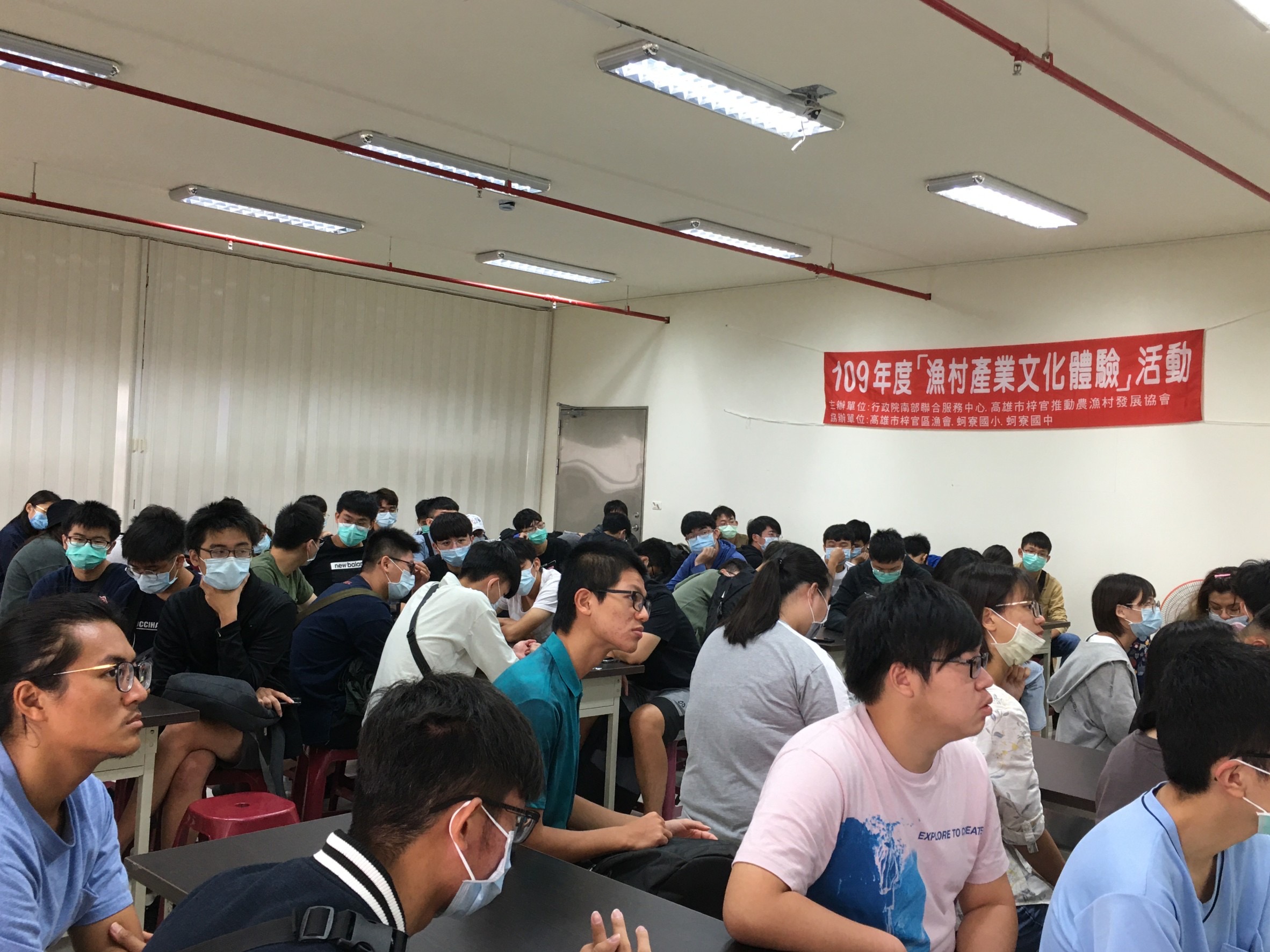 許乃文副執行長表示,南服中心是行政院在南部地區的延伸,是中央及地方政府間的橋樑,服務轄區為高屏澎三縣市,扮演著協助中央部會機關宣導相關政策之角色。本次活動除安排講座外,並藉由兩位漁會導覽員引導參觀魚市場並現場了解拍賣魚貨作業流程、手做魚丸DIY、參觀漁港碎冰廠體驗海水冰等有趣課程。為讓年輕學子透過活動的體驗,深入瞭解當地烏魚產業文化,並結合蚵仔寮漁港周邊漁村資源及漁特產品產業導覽,吸引年輕世代進入農業生產與經營行列,以加強宣導農村再生計畫各項成果。