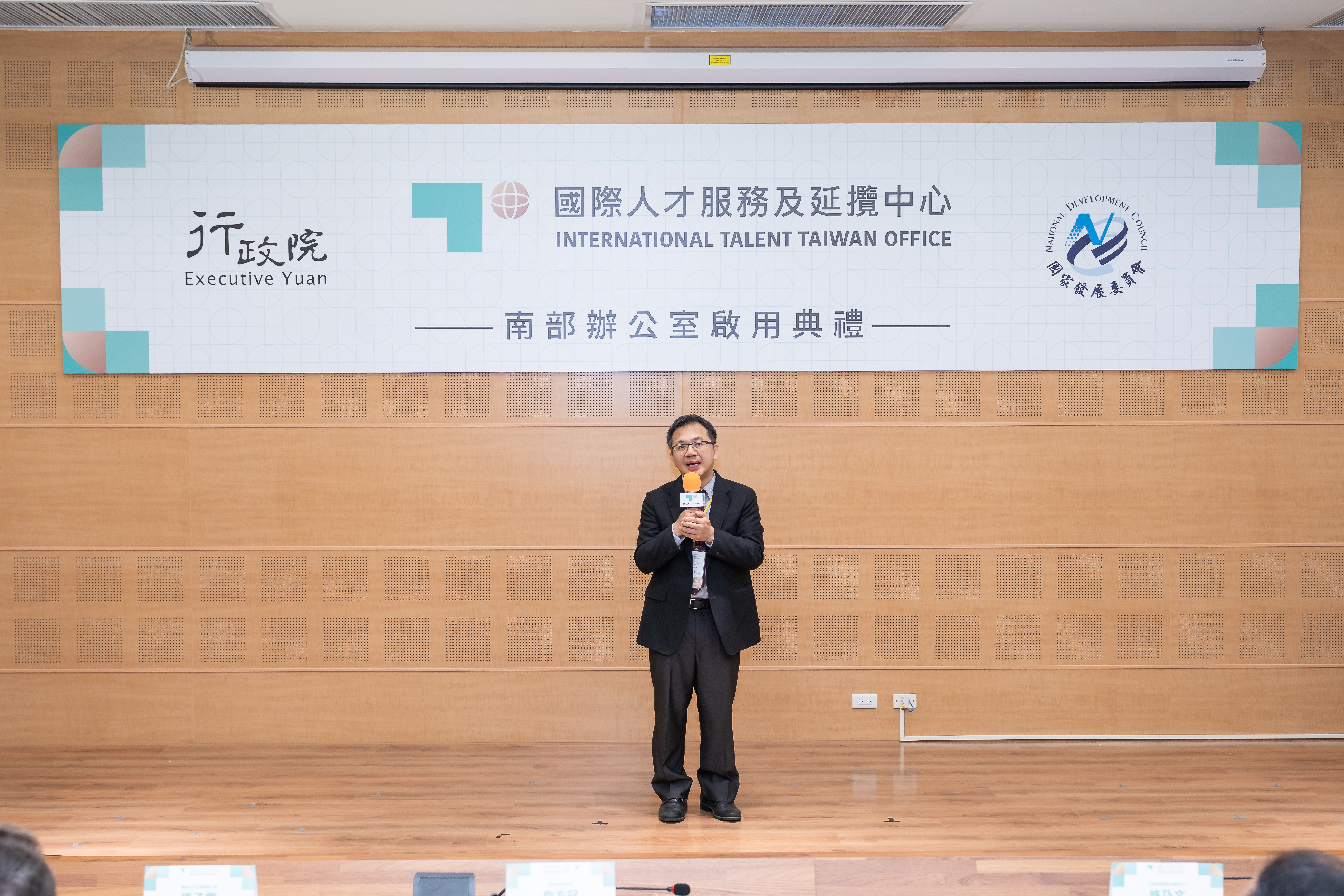 國發會今(23)日舉辦國際人才服務及延攬中心南部辦公室(International Talent Taiwan Southern Office)啟用典禮,由國發會詹方冠副主委及行政院南部聯合服務中心許乃文執行長共同揭幕,並有林岱樺立法委員、AIT高雄分處張子霖處長(Neil Gibson)高雄市政府陳盈秀副秘書長、屏東縣政府王榮愷參議、澎湖縣政府陳晶卉參議見證,未來將提供在南臺灣的7千餘位外國專業人才,以及其眷屬等一站式服務,協助國際人才於南臺灣深耕發展。