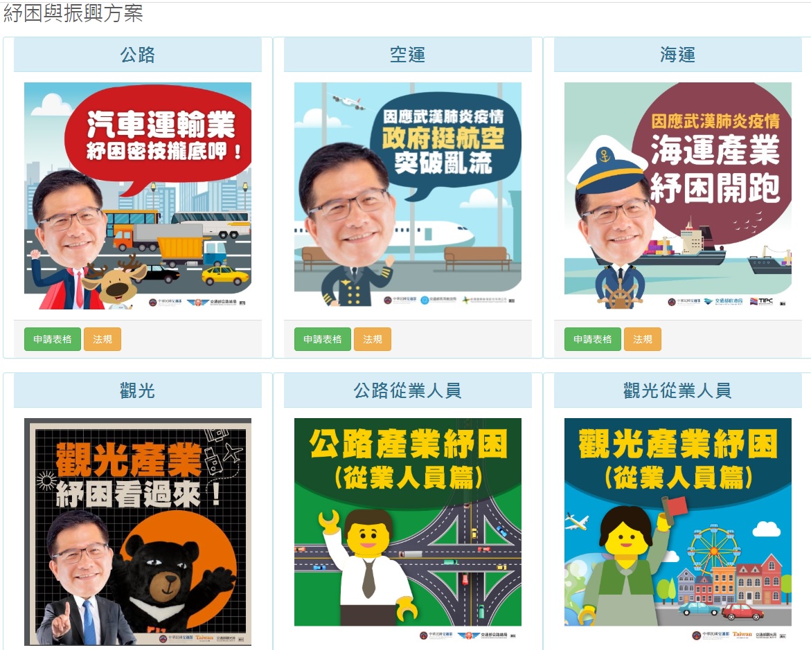 其他在海運產業及航空產業紓困補助申請,詳可參閱交通部因應武漢肺炎交通觀光防疫專區,及懶人包內容。