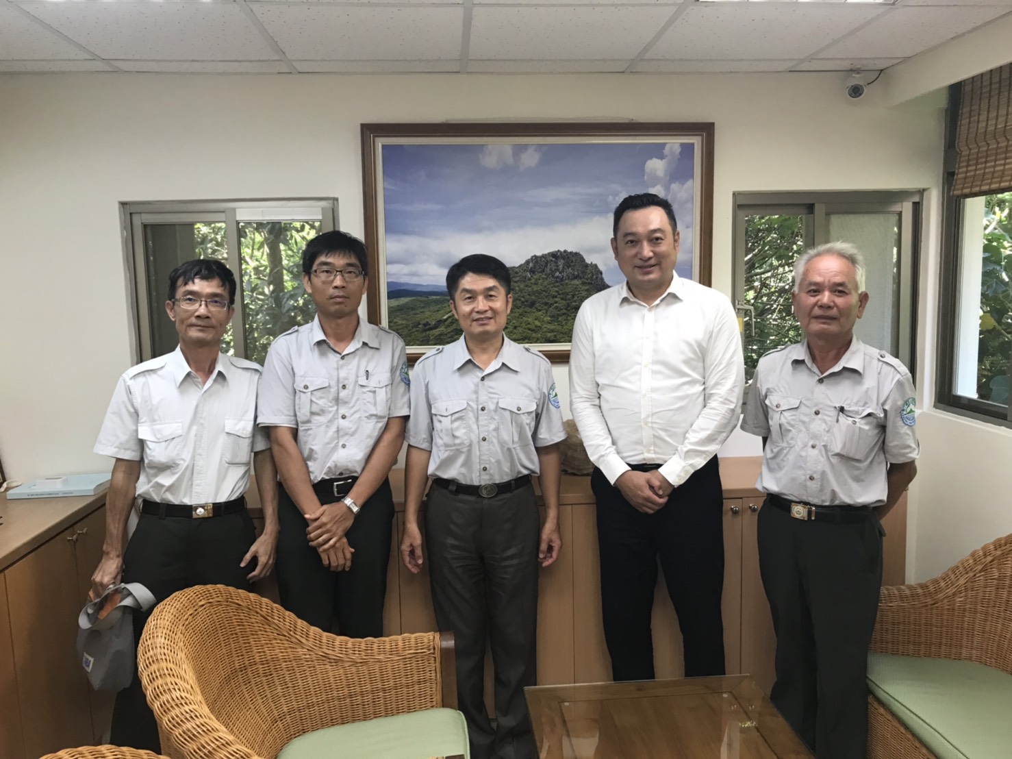 本次陳政聞執行長會見內政部營建署墾丁國家公園管理處許亞儒代理處長、教育部國立海洋生物博物館陳德豪副館長、交通部觀光局大鵬灣國家風景區管理處陳煜川處長、財政部國有財產署南區分署黃莉莉分署長、臺灣港務股份有限公司吳宗榮董事長。其中分別針對墾丁國家公園在自然資源保育與觀光、地區開發間如何兼顧、加強對中小學生的環境教育;國立海洋生物博物館的海水取水管因沿岸污染問題需向外海延伸、海龜保育;大鵬灣國家風景區管理處的如何協助BOT委託經營業者的需求、台灣燈會後的場地復原工作;國有財產署南區分署的如何提升閒置國有地的有效運用、及向其爭取本中心新大樓旁空地無償撥用為停車地空間;臺灣港務公司的高雄港口腹地開發等議題交換意見。