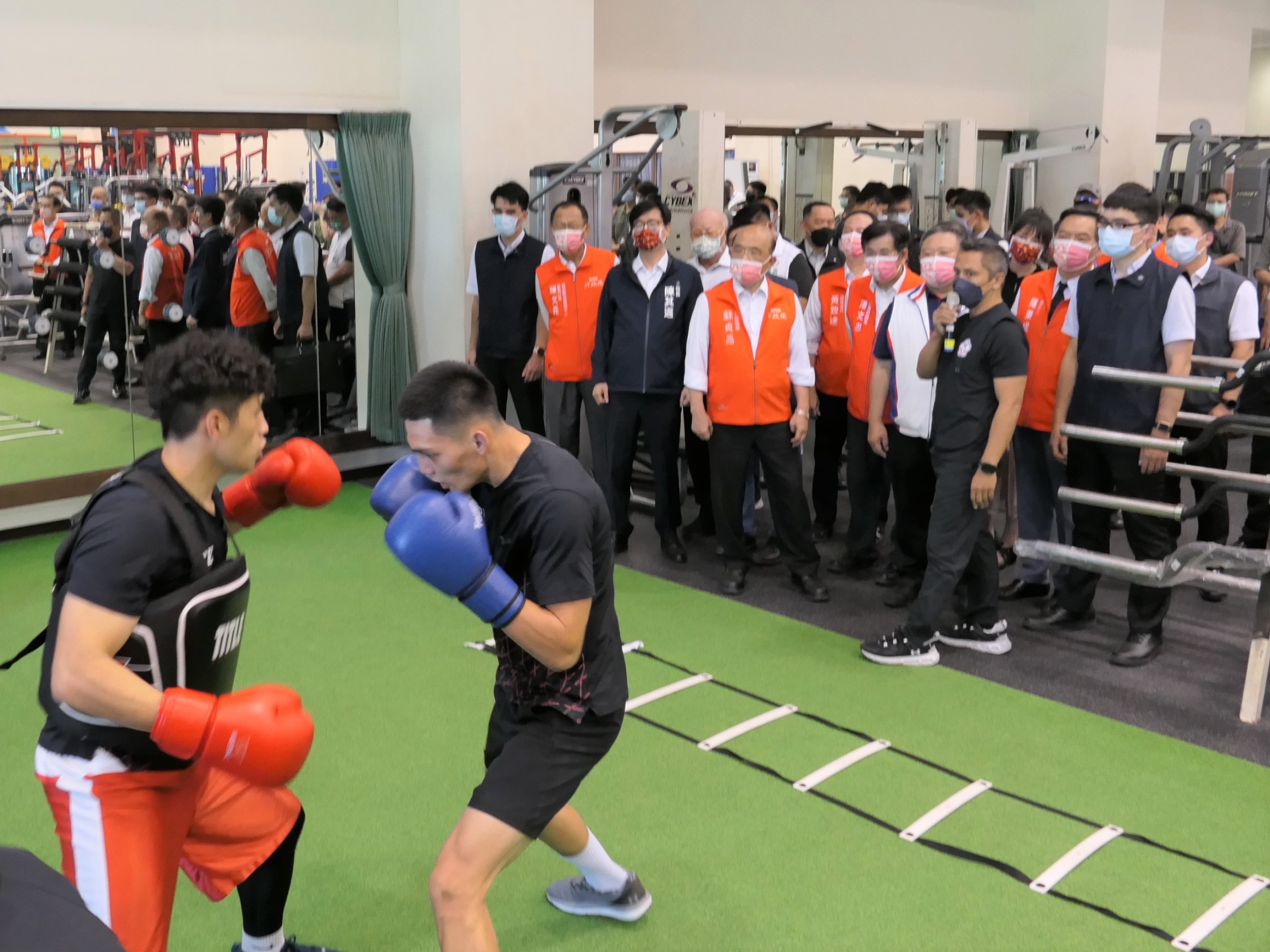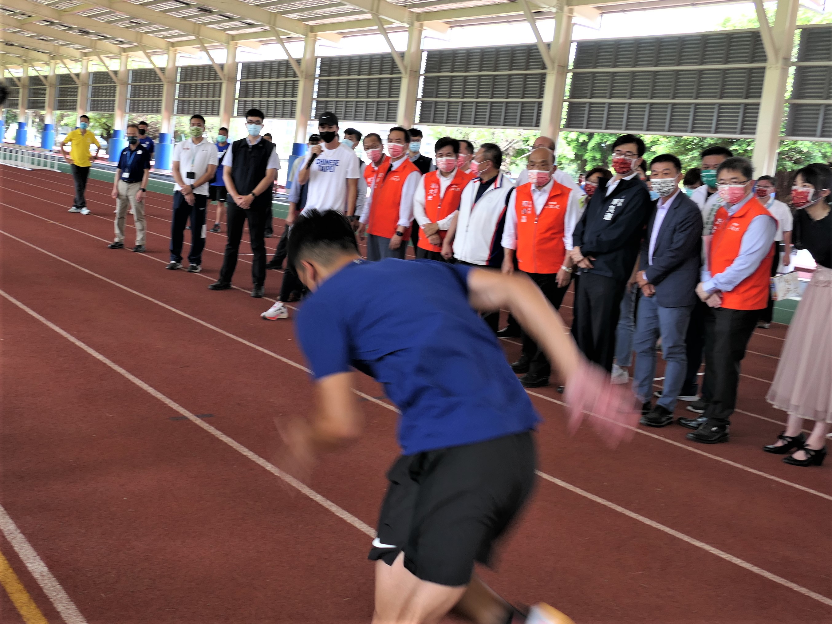 隨後,蘇院長參訪田徑場鉛球投擲區及風雨跑道區,觀看選手示範,聽取運動科學儀器測量說明,並鼓勵現場培訓選手為自己和國家創下好成績。最後,院長參觀運動醫務防護室、重量訓練室、選手宿舍及選手餐廳,慰勞防護員、營養師等相關工作同仁的辛勞及努力。