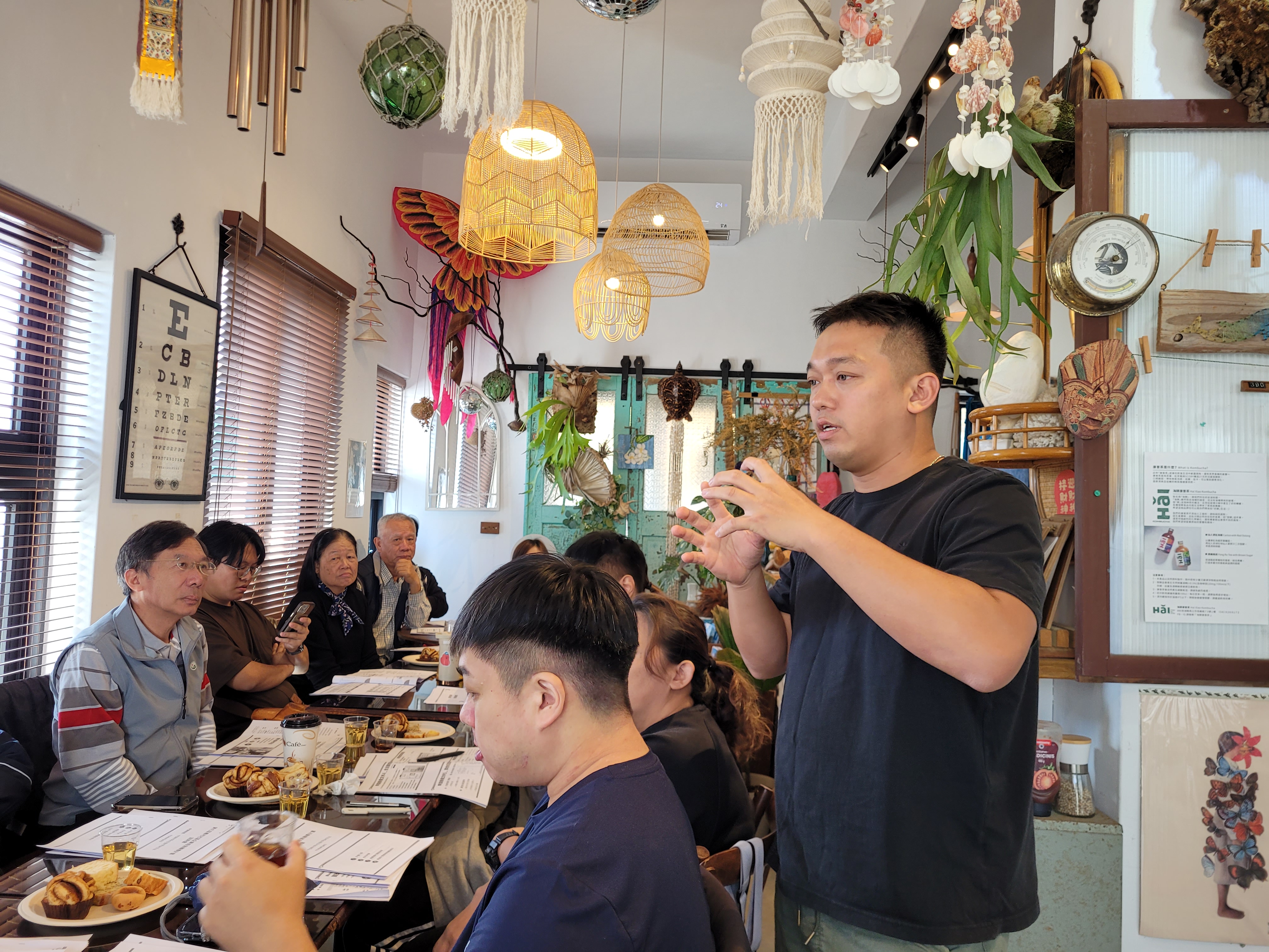 此次活動邀請農村水保署臺南分署柯燦堂分署長、農村營造科蔡科長及其團隊、澎湖縣政府農漁局高吟秋科長、與在地十餘位青創青年代表共同暢談輔導計畫。席間訪談多家具優質潛力店家及其他青創青年,深入了解店家特色、 創業理念及資源需求等,透過三方不同角度建議、交流及討論。